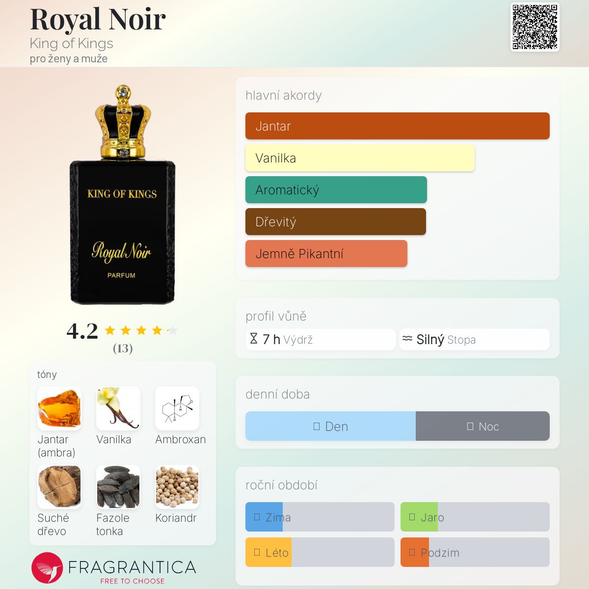 Royal Noir podle King of Kings je Orientální Fougere vůně pro ženy a muže. Toto je nová vůně. Royal Noir byl/a uveden/a v roce 2024.