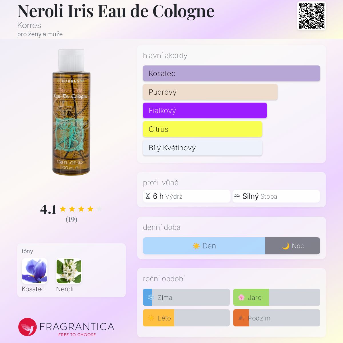 Neroli Iris Eau de Cologne podle Korres je vůně pro ženy a muže. Neroli Iris Eau de Cologne byl/a uveden/a v roce 2018.