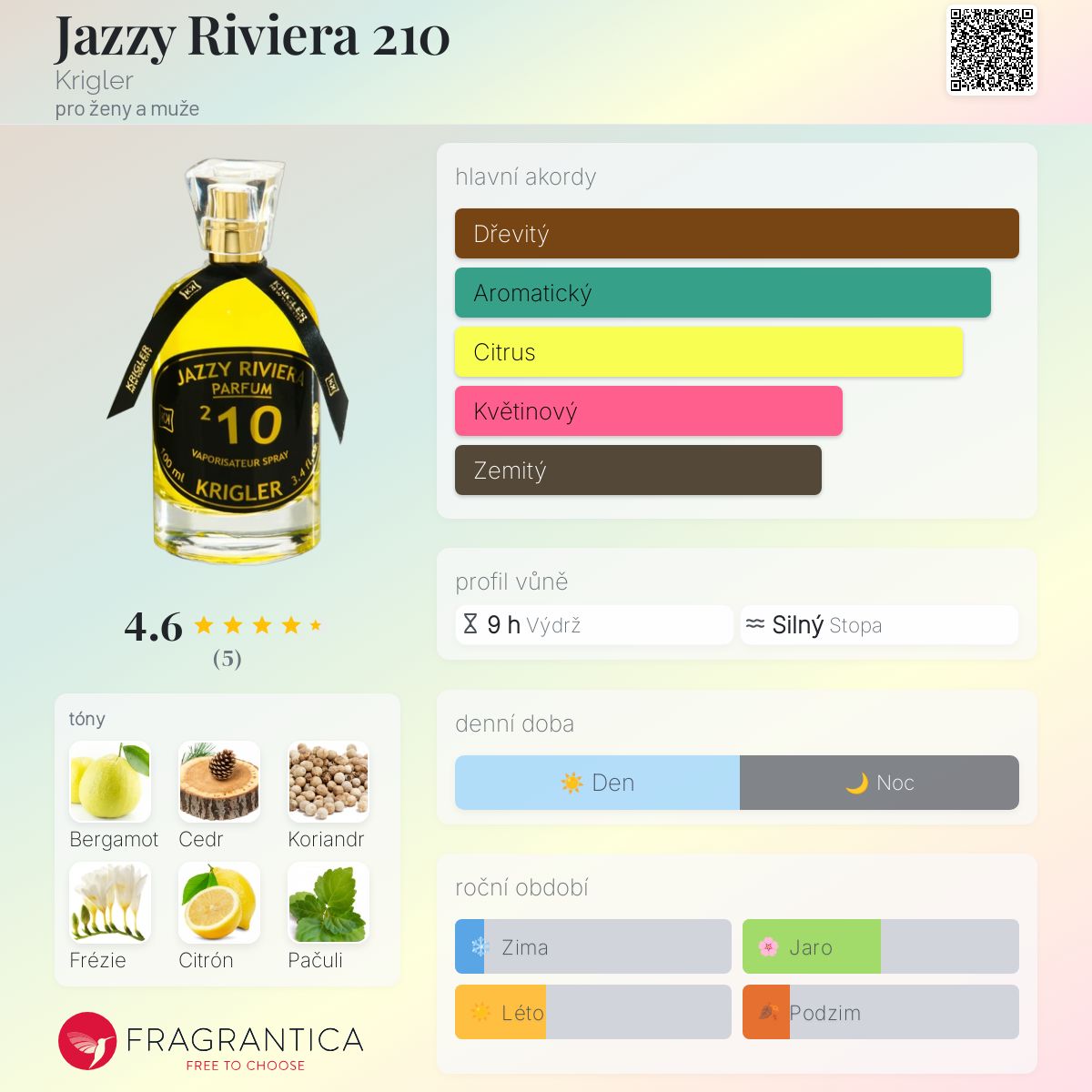 Jazzy Riviera 210 podle Krigler je Citrus vůně pro ženy a muže. Jazzy Riviera 210 byl/a uveden/a v roce 2010.
