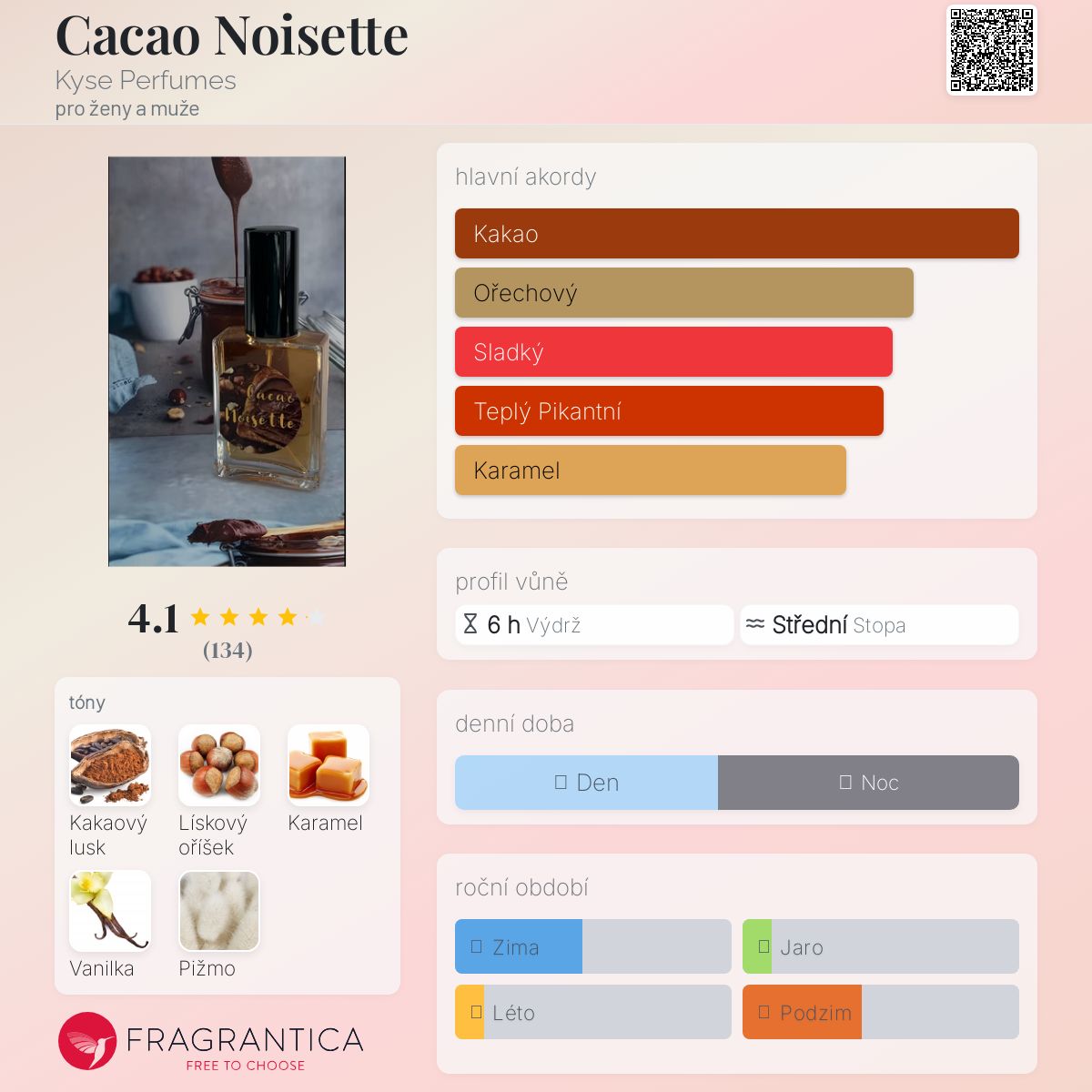 Cacao Noisette podle Kyse Perfumes je Orientální Vanilla vůně pro ženy a muže. Cacao Noisette byl/a uveden/a v roce 2020. "Nosem" za touto vůní je Terri Bozzo.