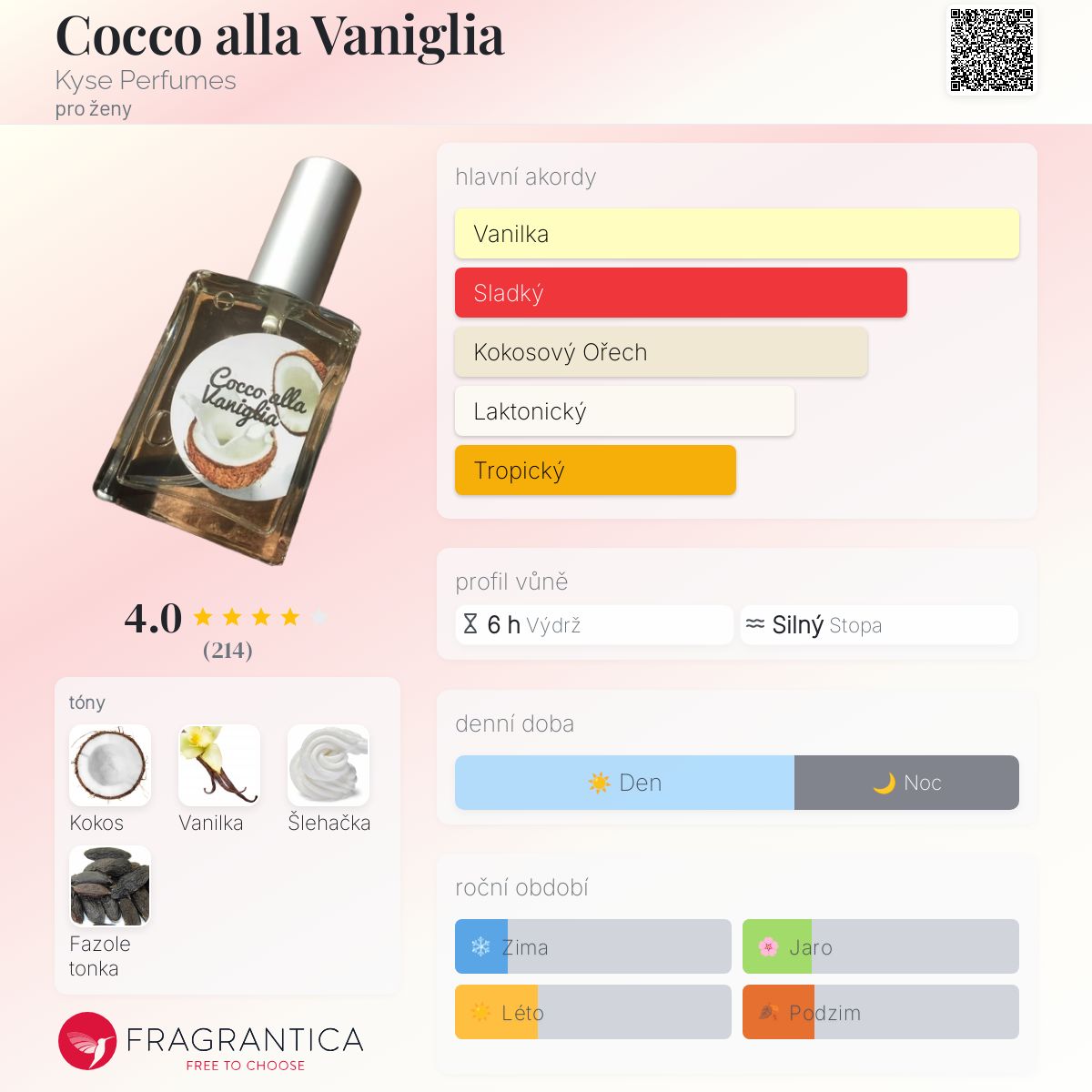 Cocco alla Vaniglia podle Kyse Perfumes je vůně pro ženy. Cocco alla Vaniglia byl/a uveden/a v roce 2019. "Nosem" za touto vůní je Terri Bozzo.