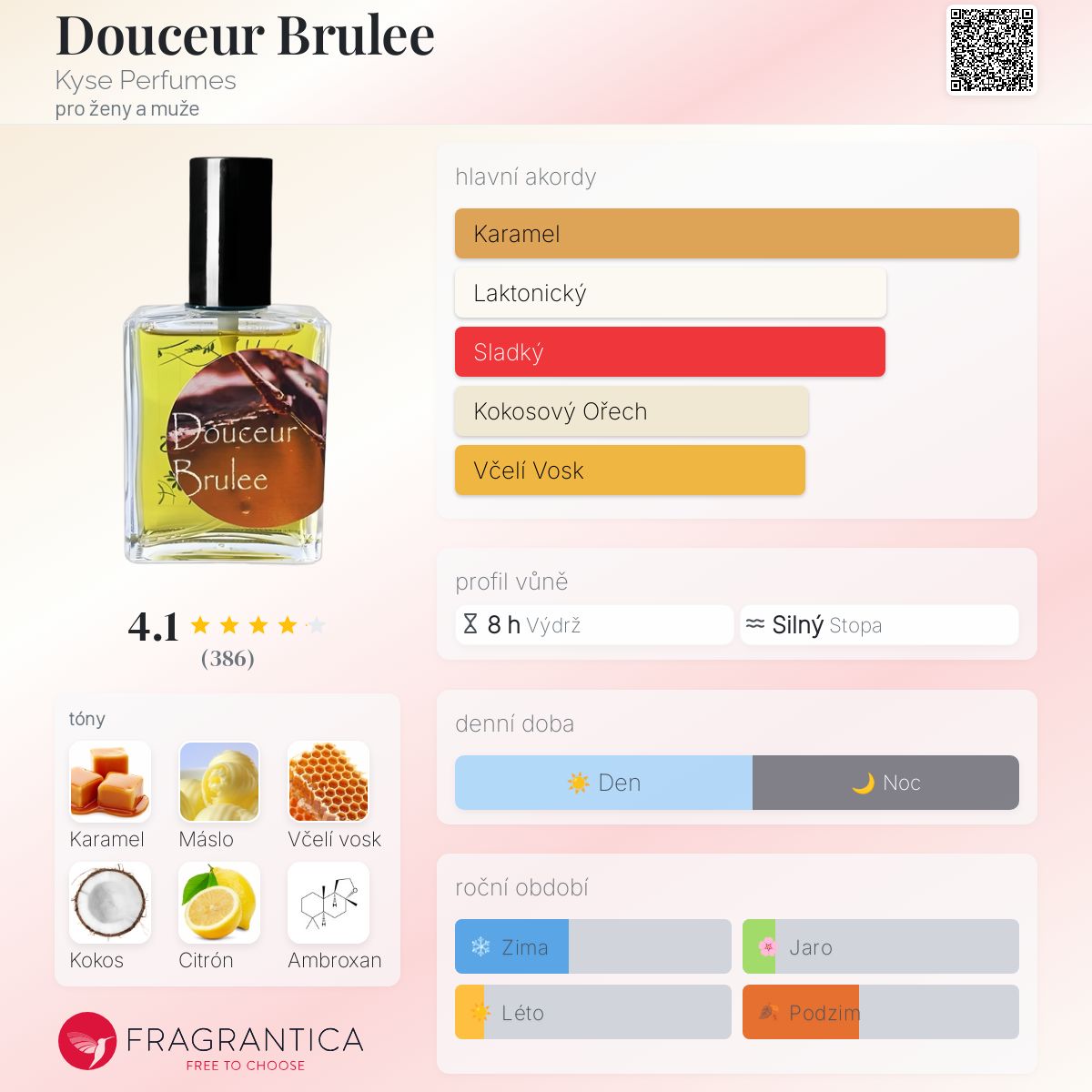 Douceur Brulee podle Kyse Perfumes je Orientální vůně pro ženy a muže. Douceur Brulee byl/a uveden/a v roce 2014. "Nosem" za touto vůní je Terri Bozzo.