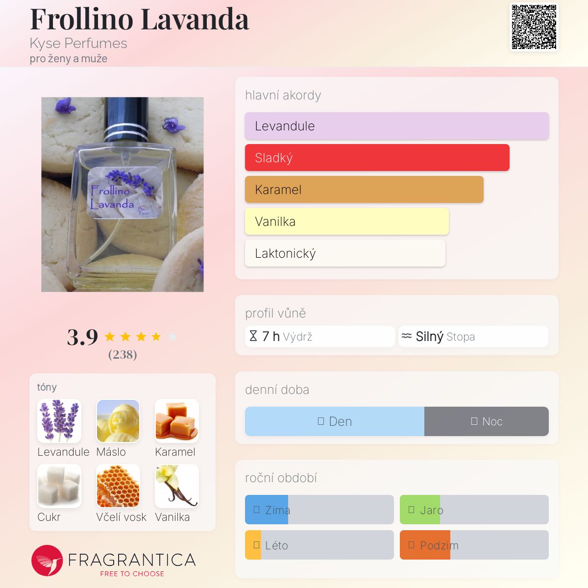 Frollino Lavanda podle Kyse Perfumes je Orientální Vanilla vůně pro ženy a muže. Frollino Lavanda byl/a uveden/a v roce 2014. "Nosem" za touto vůní je Terri Bozzo.