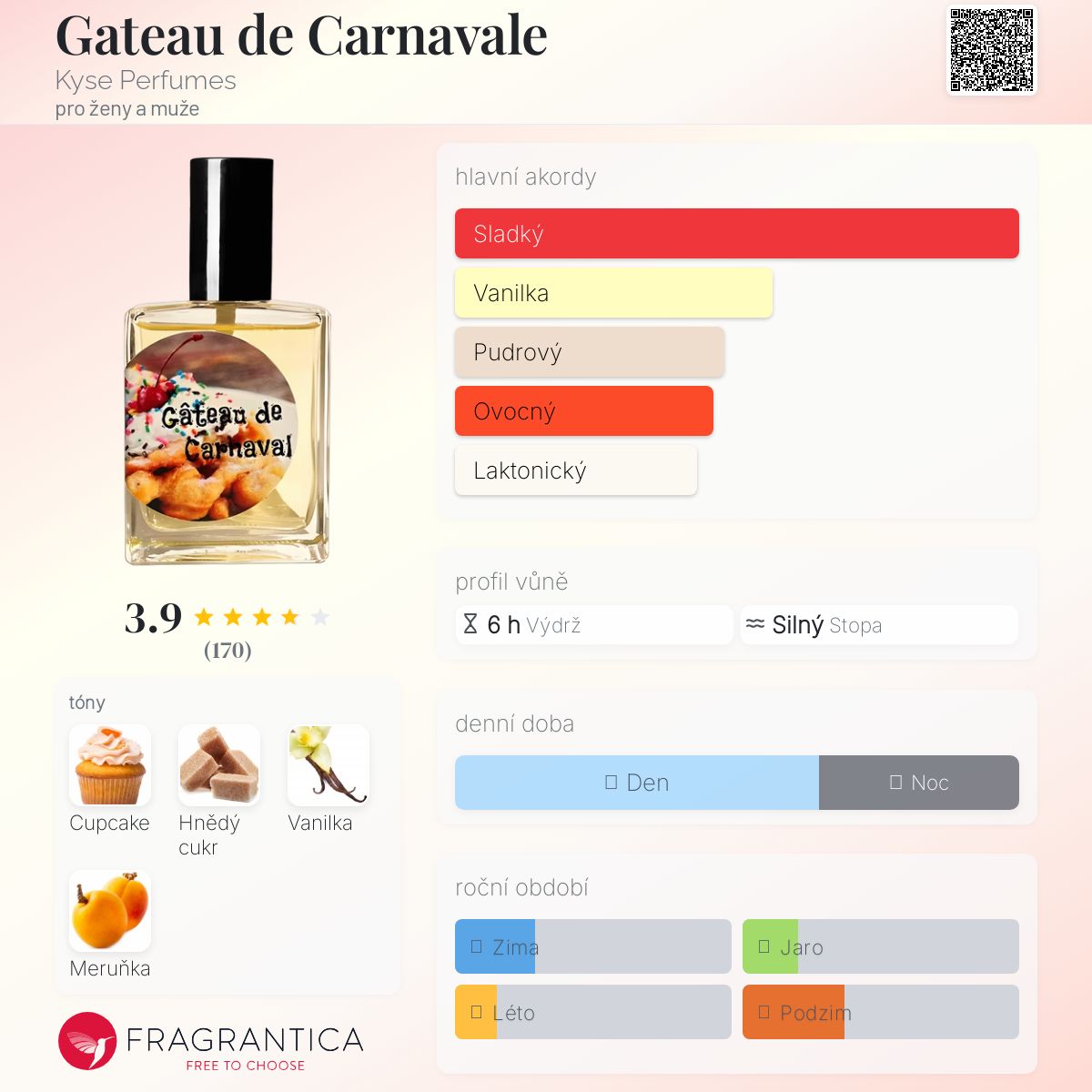 Gateau de Carnavale podle Kyse Perfumes je vůně pro ženy a muže. Gateau de Carnavale byl/a uveden/a v roce 2018. "Nosem" za touto vůní je Terri Bozzo.
