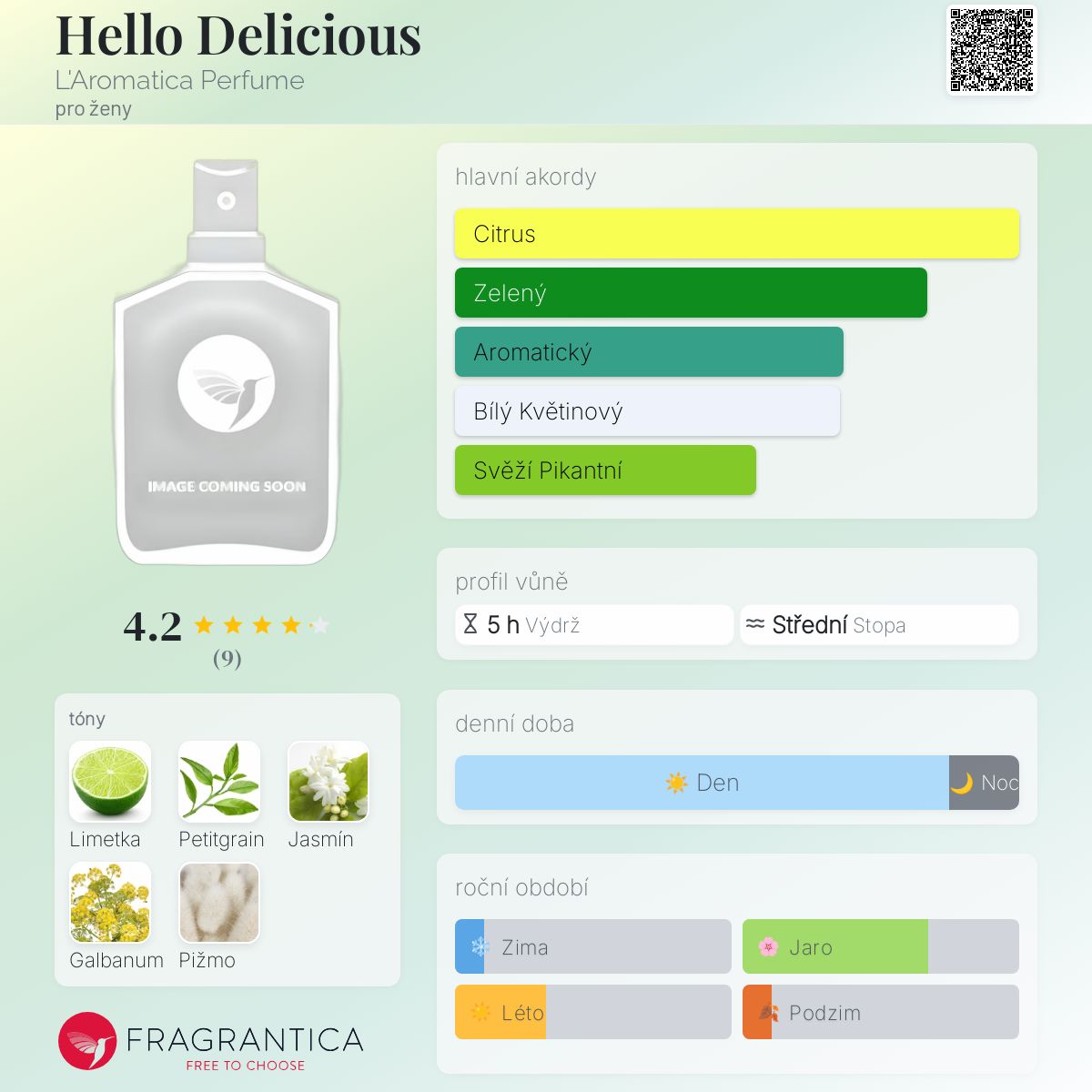 Hello Delicious podle L'Aromatica Perfume je Floral Green vůně pro ženy. "Nosem" za touto vůní je Loreto Remsing.