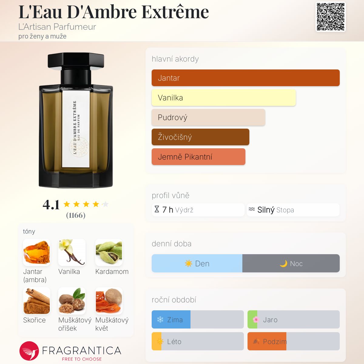 L'Eau D'Ambre Extrême podle L'Artisan Parfumeur je Orientální Spicy vůně pro ženy a muže. L'Eau D'Ambre Extrême byl/a uveden/a v roce 2001. "Nosem" za touto vůní je Jean-Claude Ellena.