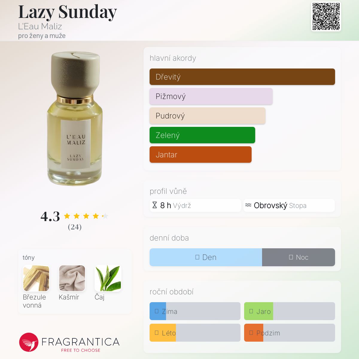 Lazy Sunday podle L'Eau Maliz je vůně pro ženy a muže. Toto je nová vůně. Lazy Sunday byl/a uveden/a v roce 2024.