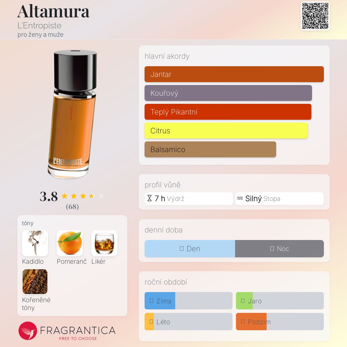 Altamura podle L'Entropiste je Citrus vůně pro ženy a muže. Toto je nová vůně. Altamura byl/a uveden/a v roce 2025. "Nosem" za touto vůní je Bertrand Duchaufour.
