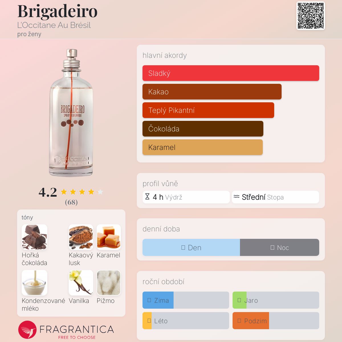 Brigadeiro podle L’Occitane Au Brésil je Orientální Vanilla vůně pro ženy. Toto je nová vůně. Brigadeiro byl/a uveden/a v roce 2025. Vrchní tóny jsou Citrusy a Bylinné tóny; střední tóny jsouČokoláda, Kakao a Kondenzované mléko ; základní tóny jsou Karamel, Vanilka, Pižmo a Cedr.