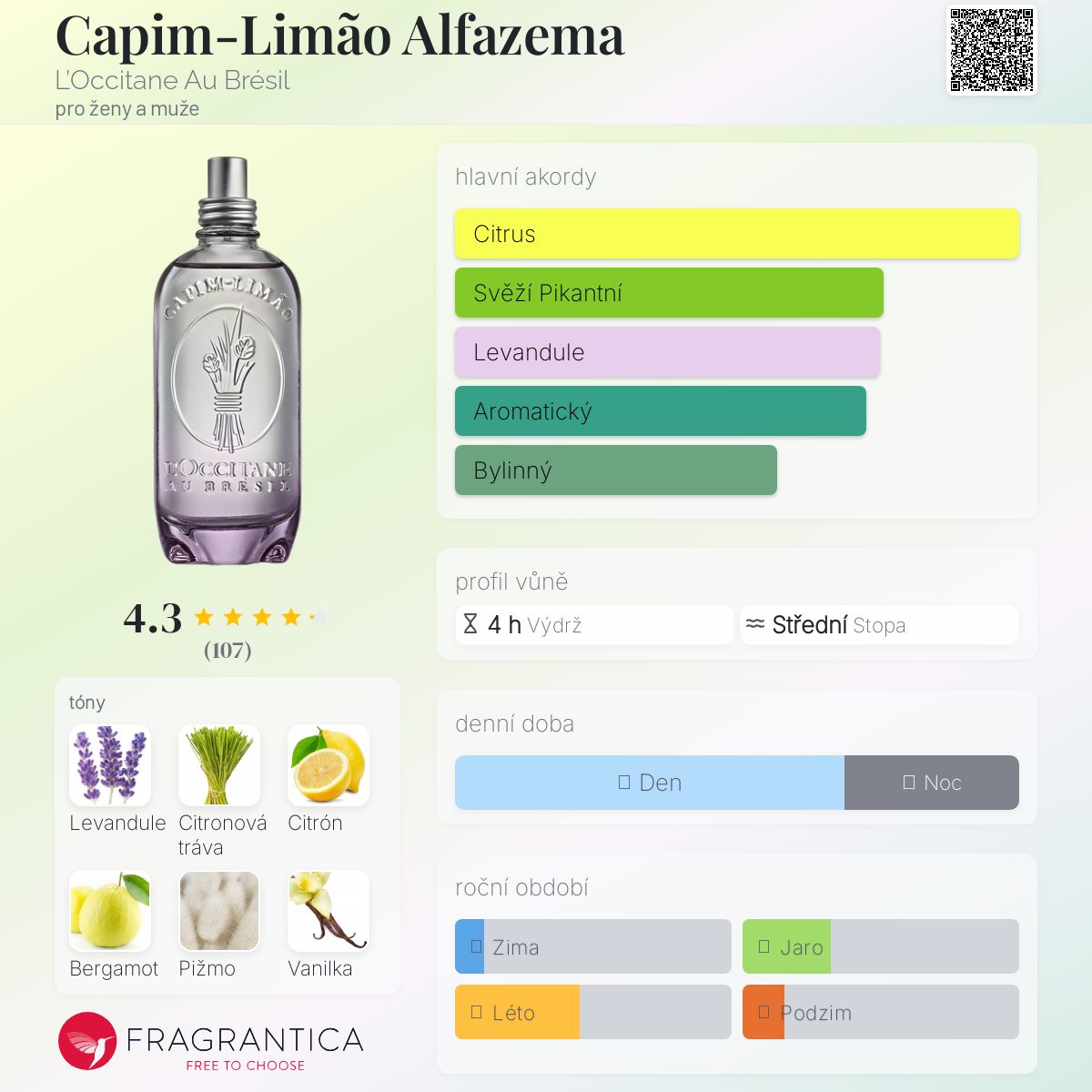 Capim-Limão Alfazema podle L’Occitane Au Brésil je Citrus Aromatic vůně pro ženy a muže. Capim-Limão Alfazema byl/a uveden/a v roce 2020. Vrchní tóny jsou Sicilský citron a Bergamot; střední tóny jsouLevandule, Citronová tráva a Damašská růže ; základní tóny jsou Pižmo a Vanilka.