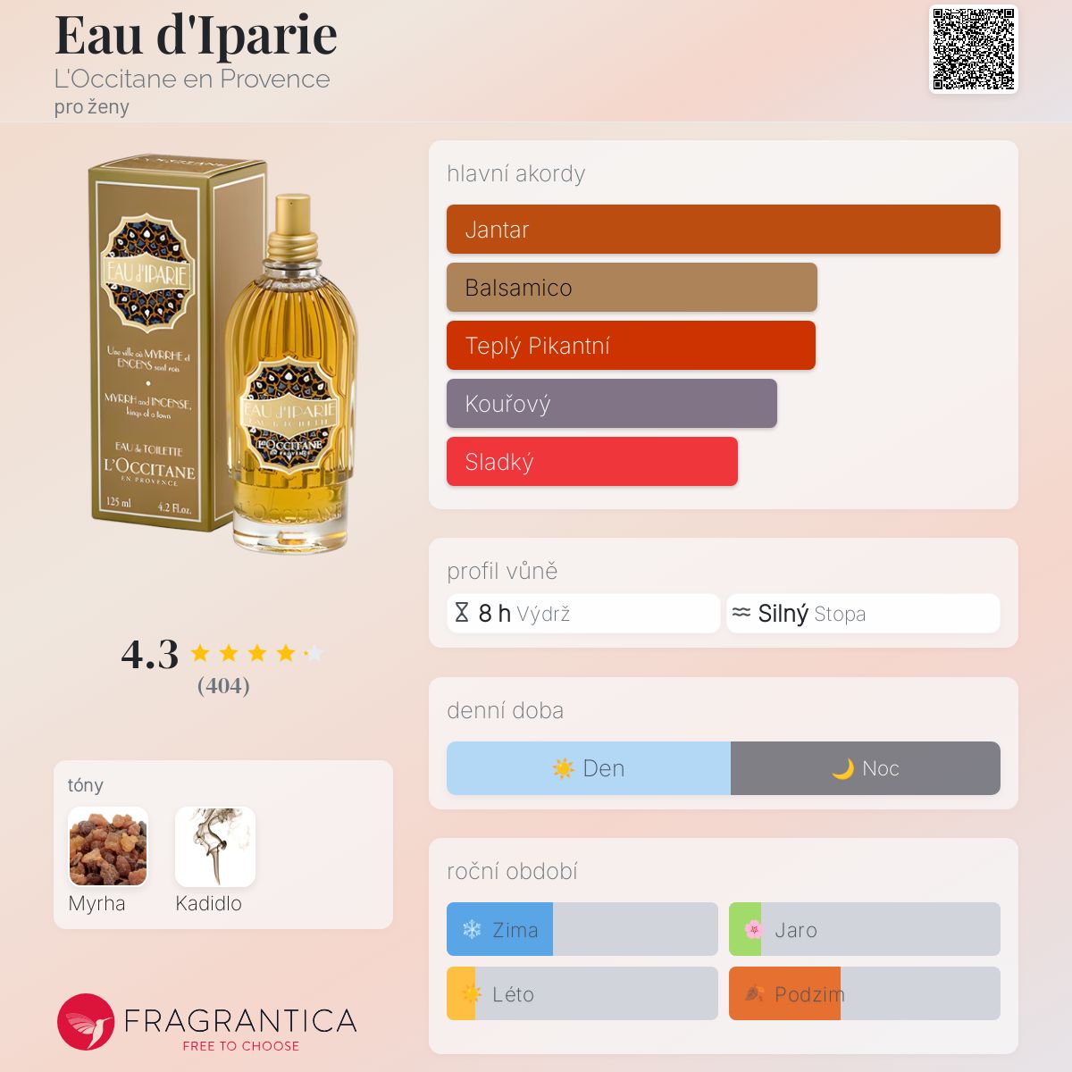 Eau d'Iparie podle L'Occitane en Provence je Orientální Woody vůně pro ženy. Eau d'Iparie byl/a uveden/a v roce 2005.