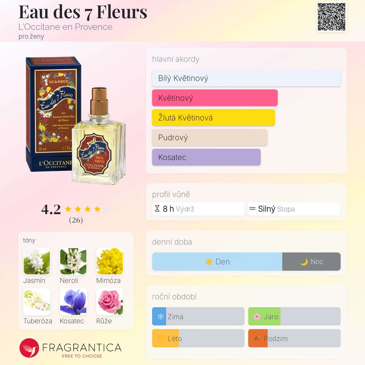 Eau des 7 Fleurs podle L'Occitane en Provence je Floral vůně pro ženy. Eau des 7 Fleurs byl/a uveden/a v roce 2005.