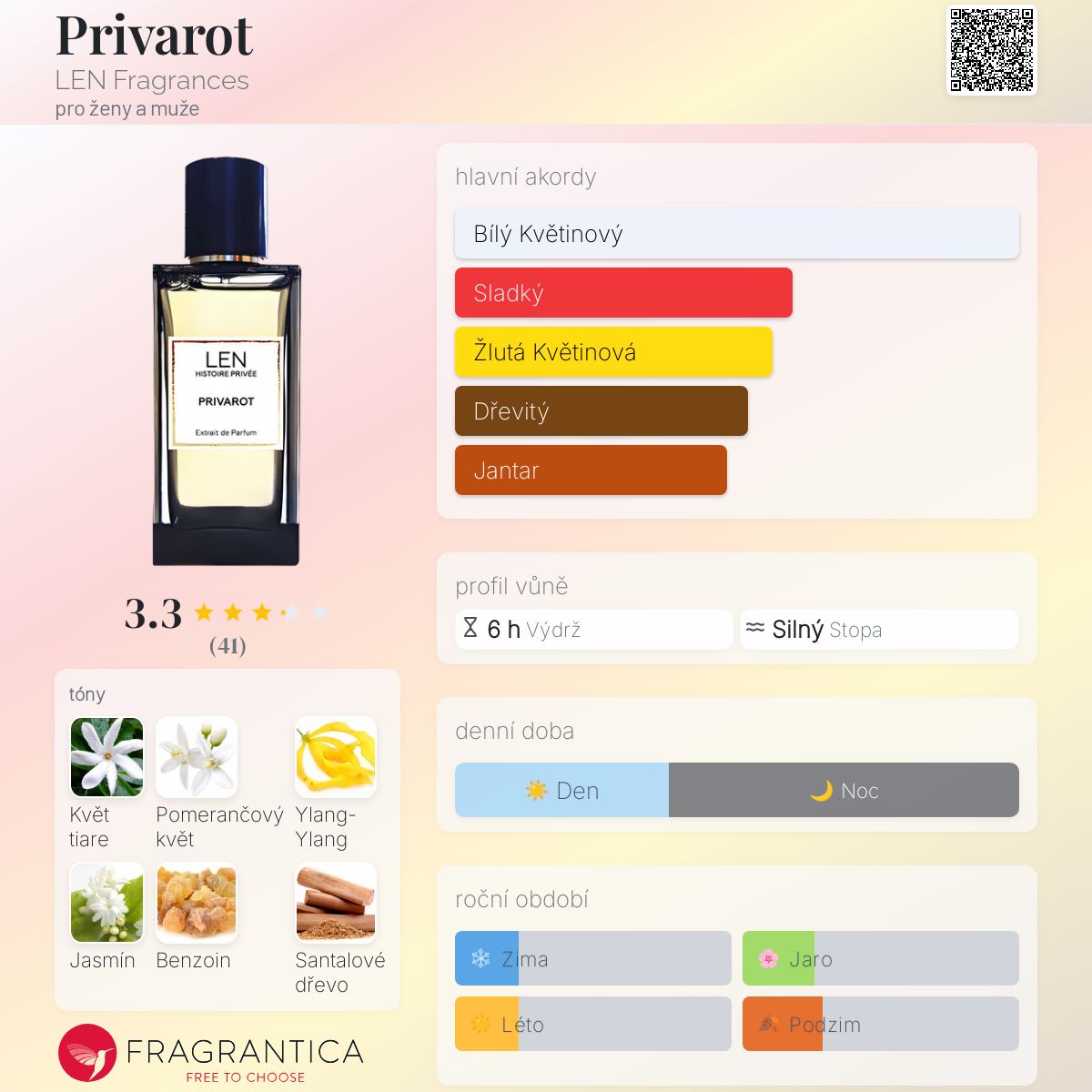 Privarot podle LEN Fragrances je Orientální Floral vůně pro ženy a muže. Privarot byl/a uveden/a v roce 2019. "Nosem" za touto vůní je Michel Almairac. Vrchní tóny jsou Květ tiare a Pomerančový květ; střední tóny jsouYlang-Ylang a Jasmín ; základní tóny jsou Benzoin a Santalové dřevo.