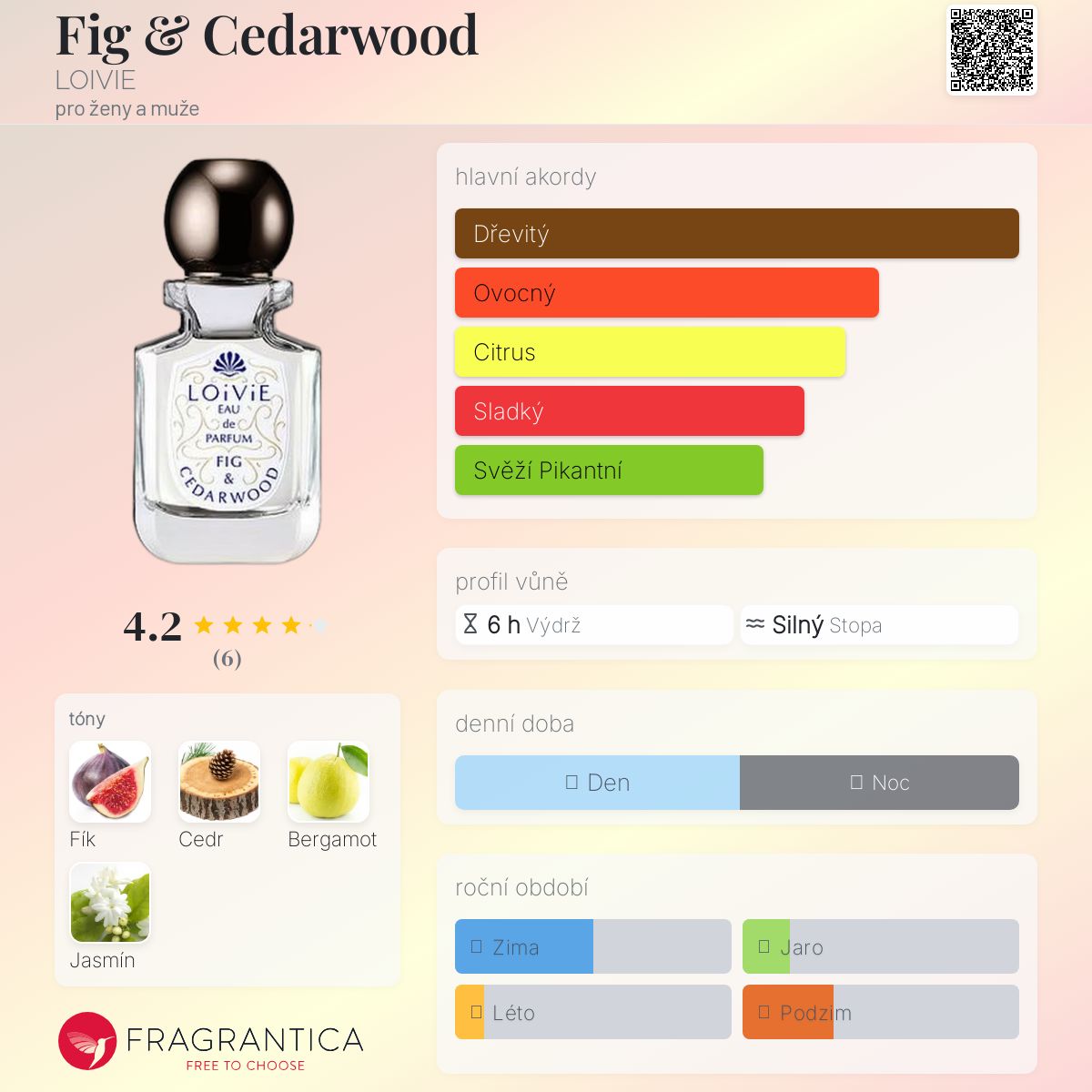 Fig & Cedarwood podle LOIVIE je Floral Fruity vůně pro ženy a muže. Toto je nová vůně. Fig & Cedarwood byl/a uveden/a v roce 2023. Vrchní tóny jsou Fík a Bergamot; střední tón jeJasmínový list ; základní tón je Cedr.