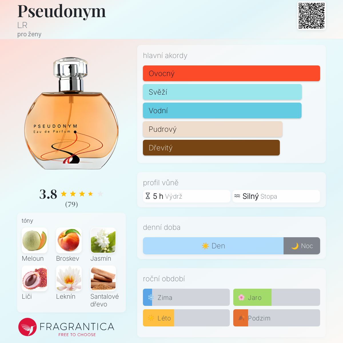 Pseudonym podle LR je Floral Fruity vůně pro ženy. Pseudonym byla spuštěna během 2000. Vrchní tóny jsou Meloun, Broskev a Liči; střední tóny jsouJasmín, Leknín a Fialka ; základní tóny jsou Santalové dřevo, Vanilka a Vetiver.