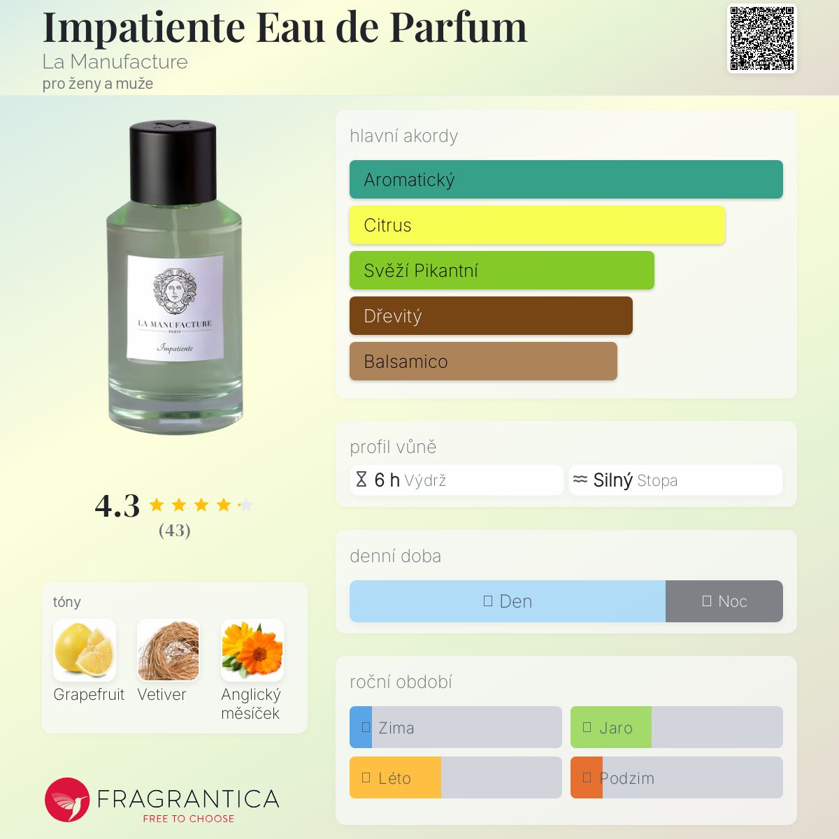 Impatiente Eau de Parfum podle La Manufacture je Floral vůně pro ženy a muže. Impatiente Eau de Parfum byl/a uveden/a v roce 2021.