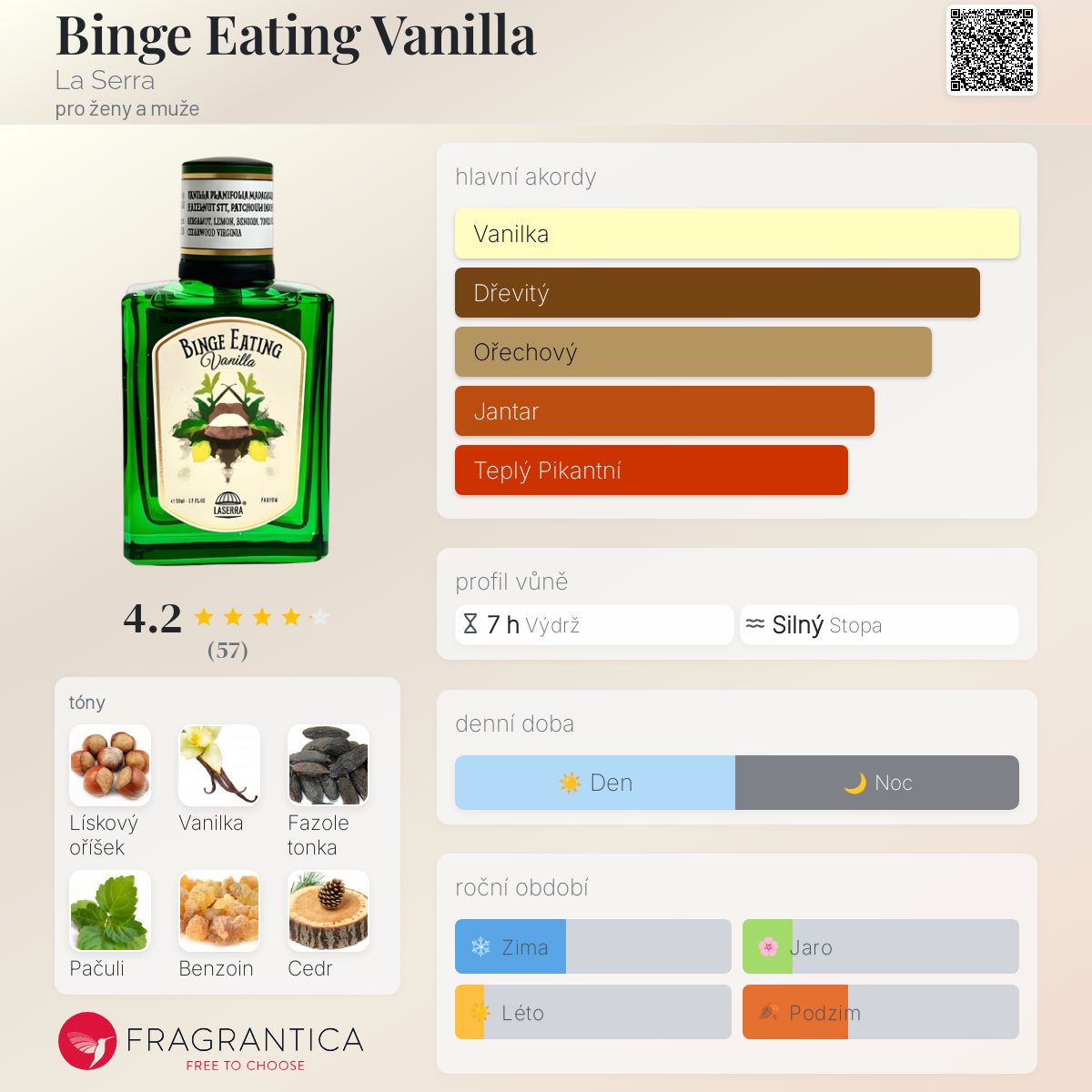 Binge Eating Vanilla podle La Serra je Orientální vůně pro ženy a muže. Binge Eating Vanilla byl/a uveden/a v roce 2023. "Nosem" za touto vůní je Fabrice Pellegrin.