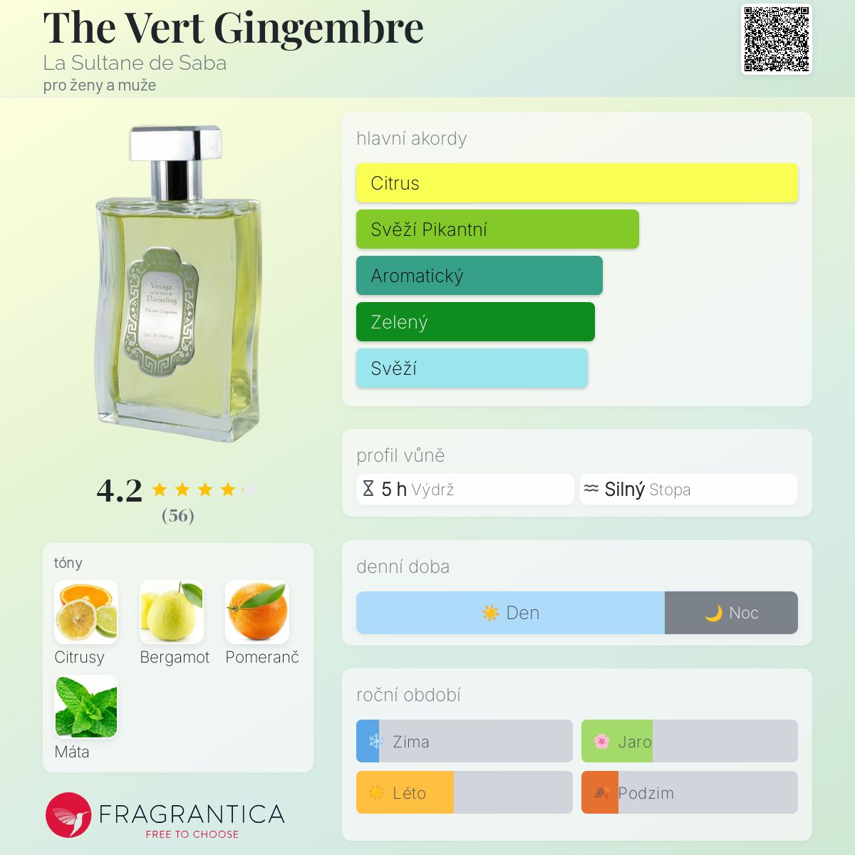 The Vert Gingembre podle La Sultane de Saba je Aromatic vůně pro ženy a muže. The Vert Gingembre byl/a uveden/a v roce 2012. Vrchní tóny jsou Citrusy, Bergamot, Pomeranč a Máta;