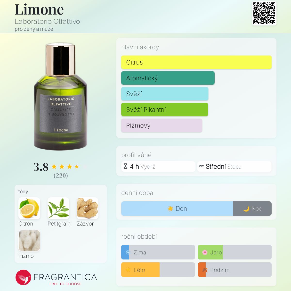 Limone podle Laboratorio Olfattivo je Citrus vůně pro ženy a muže. Limone byl/a uveden/a v roce 2021. "Nosem" za touto vůní je Jean-Claude Ellena.