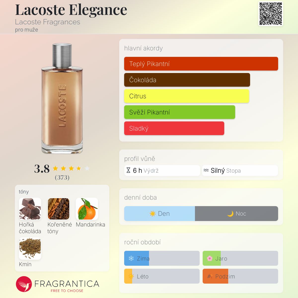 Lacoste Elegance podle Lacoste Fragrances je Orientální Fougere vůně pro muže. Lacoste Elegance byl/a uveden/a v roce 2007.