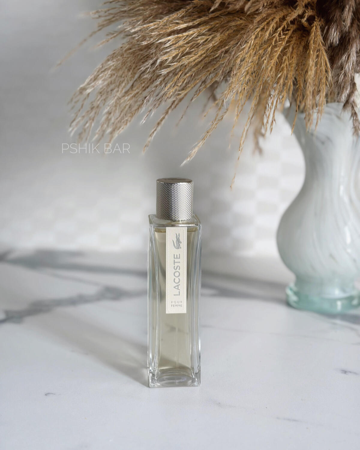 Lacoste Pour Femme podle Lacoste Fragrances je Floral Woody Musk vůně pro ženy. Lacoste Pour Femme byl/a uveden/a v roce 2003. "Nosem" za touto vůní je Olivier Cresp. Vrchní tóny jsou Frézie, Pepř a Jablko; střední tóny jsouFialka, Otočník, Jasmín, Ibišek a Růže ; základní tóny jsou Semiš, Santalové dřevo, Cedr, Kadidlo a Labdanum.