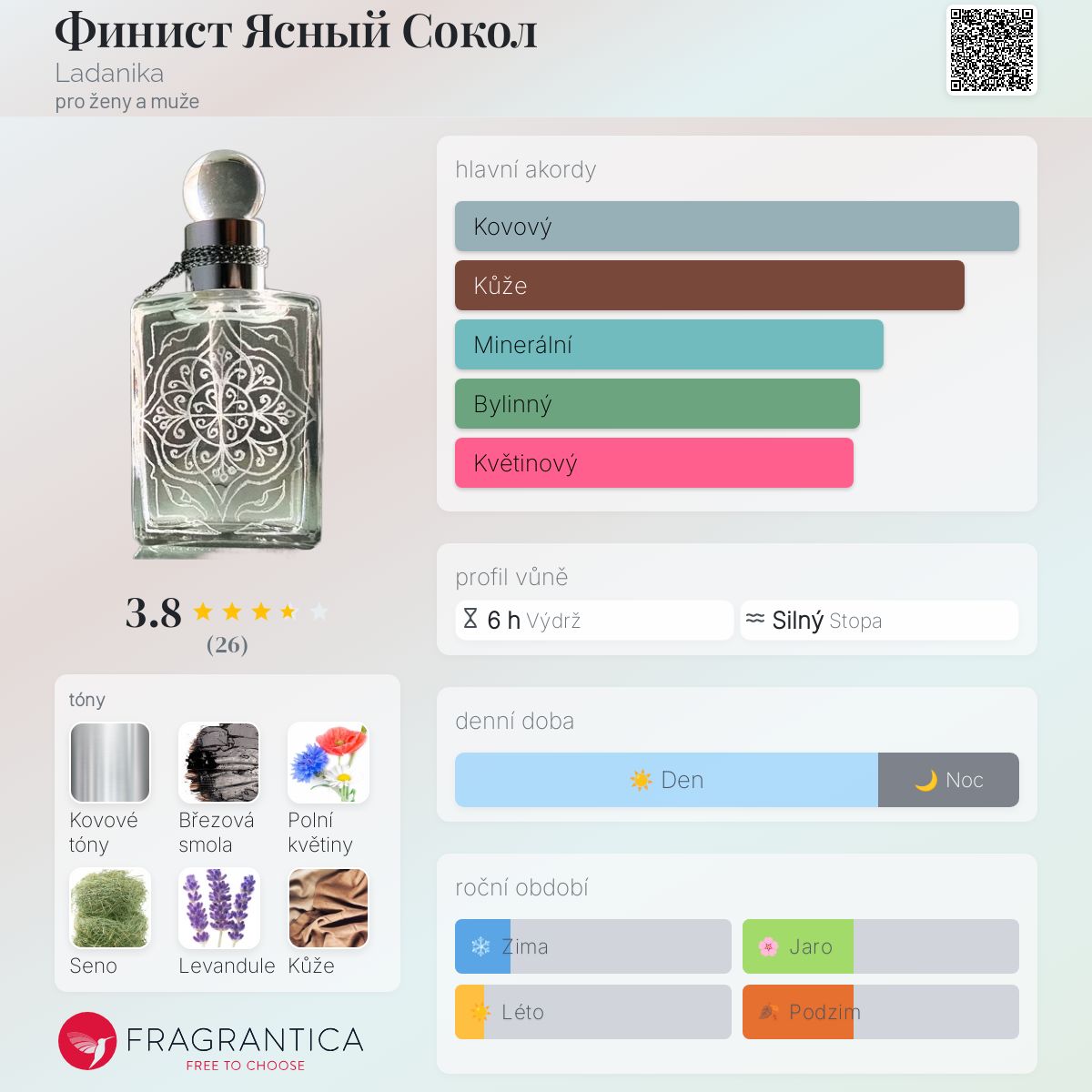 Финист Ясный Сокол podle Ladanika je vůně pro ženy a muže. Финист Ясный Сокол byl/a uveden/a v roce 2019. "Nosem" za touto vůní je Olga Gosina.