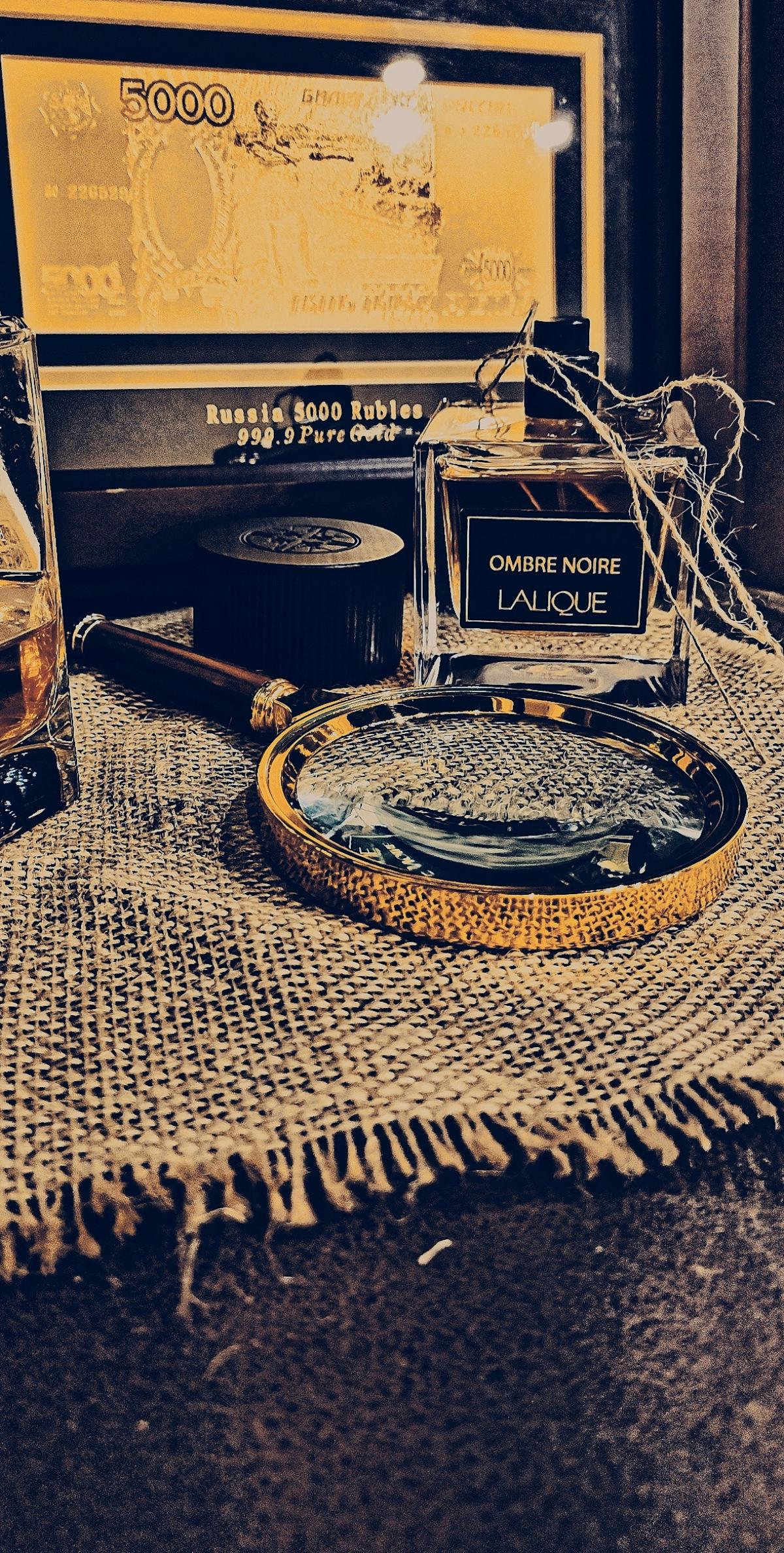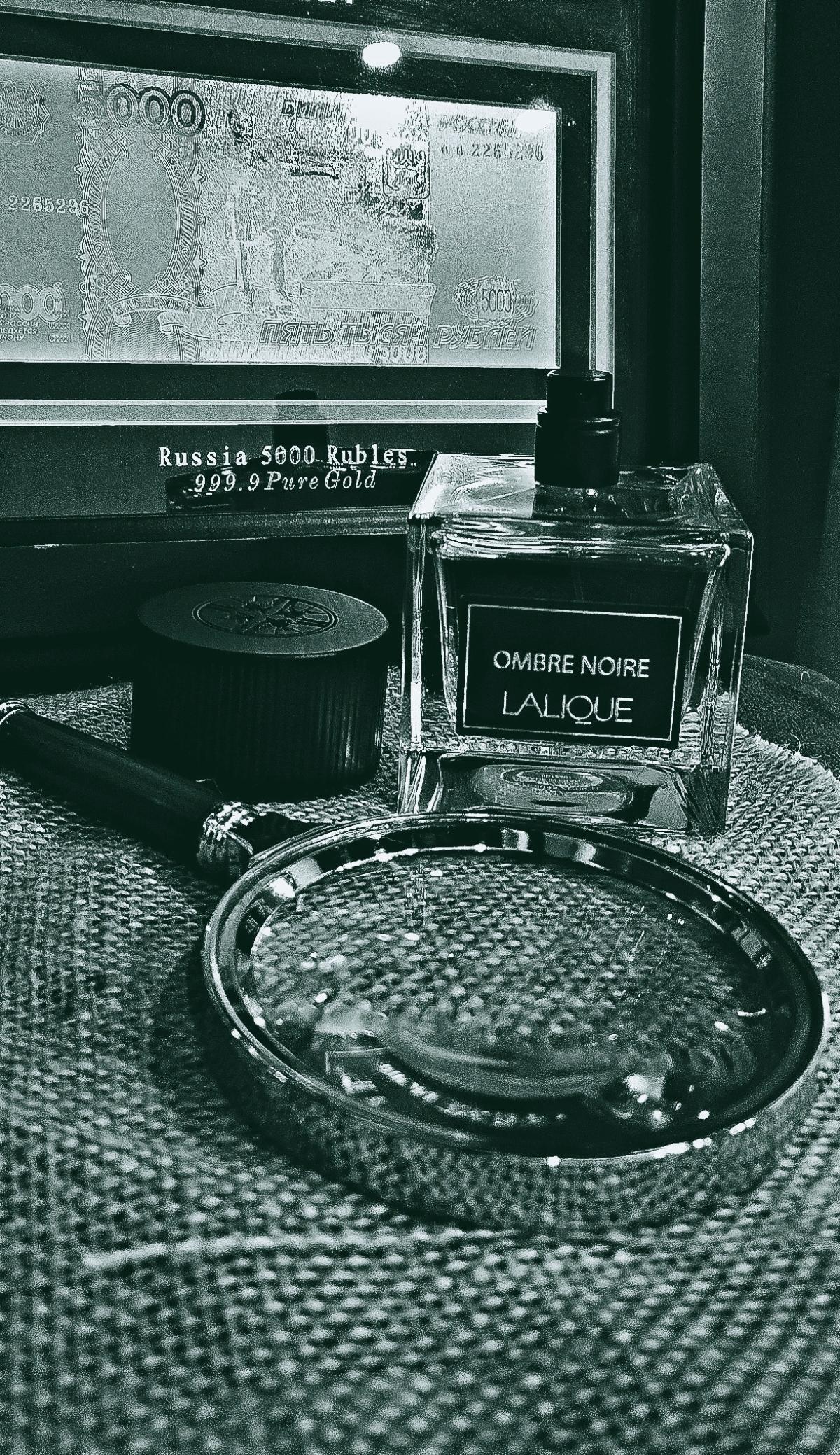 Ombré Noir je pánská orientální vůně Lalique, podle mého názoru jejich nejodvážnější vydání, včetně Encre Noir. Tato nenavazuje na nic z jejich dosavadního opusu. Vynechává vetiverové/cypřišové srdce, které tvoří DNA úspěšné Encre Noir, a ani vzdáleně nepřipomíná nic jiného z jejich řady. Možná nás geograficky omezené počáteční vydání informuje o pochybnostech domu, že Ombré osloví západní nosy. Stále je těžké ji sehnat a ve srovnání s jejich ostatními vůněmi je poněkud drahá. A jaká je to vůně! Prakticky všechny tóny mají středovýchodní původ a tak pěkně se spolu prolínají. Olibanum a myrha zde opravdu září, tabák a papyrus jim dodávají suchost připomínající poušť. Skořice je zde použita jako pravé koření, nikoliv dezert - představte si, že jíte rovnou skořicovou kůru: suchá a exotická. Koňak dodává hloubku a smyslnost, zatímco fíkový list a máta přidávají zelenou ostrost, i když jen jemnou. Nemá nic společného s moderními trendy masového trhu. Tuhle vůni můžete nosit jen pro sebe a ocenit její krásu.