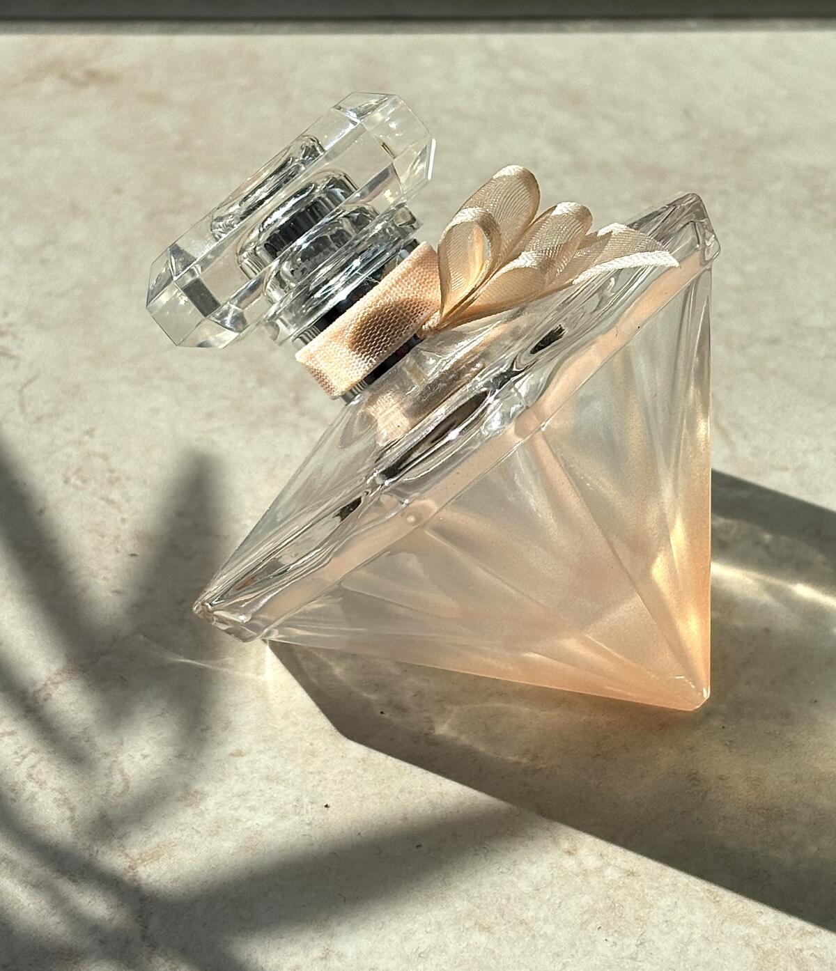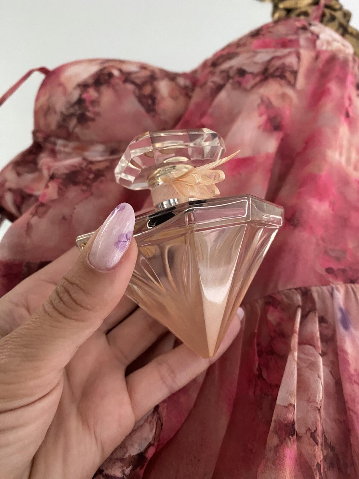 Ooooo, tohle je výjimečné. Tak moc, že jsem si ji vlastně vybrala jako svůj nadcházející svatební parfém. Nebyl v mém hledáčku, dokud jsem se nepotloukala kolem pultu Lancôme a nerozhodovala se mezi La Vie Est Belle a vůní Armani, kterou jsem právě testovala. Žena u pultu se mě zeptala, jestli jsem zkoušela Tresor Nude a že je to její nová oblíbená vůně pro nevěsty. Dala mi vzorek a byla to láska na první stříknutí. Oblak sladkého, vanilkového a kokosového blaha. Tento parfém se od ostatních s těmito tóny liší tím, že je sofistikovaný a nesměřuje k plážovým opalovacím vibracím. I když je sladká, je stále hluboká a vyzrálá. Strávila jsem týdny zkoumáním vůní a toho, co bych mohla chtít nosit na velký den. Vyzkoušela jsem všechny klasické vůně: Mademoiselle, Si, Ellie Saab, L'inderdit, ale prostě to nebyla moje parketa. Chodila jsem sem a tam, až jsem ucítila tuhle vůni, a stejně jako při výběru šatů jsem věděla, že je to ta pravá. Včera jsem se postříkala ze zbrusu nové lahvičky (nemohla jsem si pomoct) a ještě dnes ji cítím na oblečení, jako bych se čerstvě nastříkala, takže nemám obavy, že by mi v ten den nevydržela slušně dlouho. Nenechte se zmást, že je to EDT... tohle má bez debat výkon EDP.