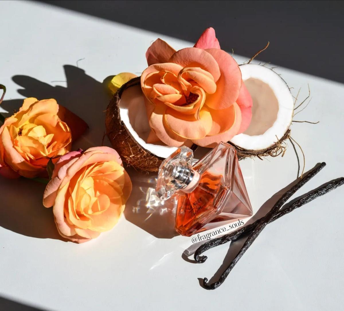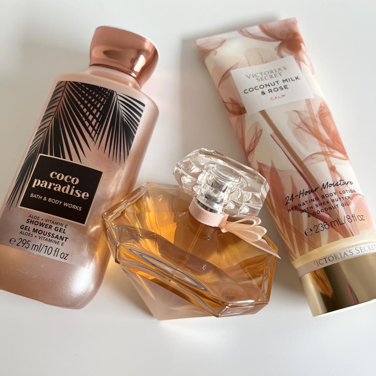 1) Vůně je podle slečny, která mi ji prodala, tropický kokos. Souhlasím s ní, voní po kokosu se sladkým a šťavnatým ovocem, nesmírně univerzální a vůbec ne mazlavá, jen se nanáší, má základ klasického Nuit tresoru a pak se objeví kouzlo... pro mě voní po kokosu, broskvi a vanilce. Mňam 😋