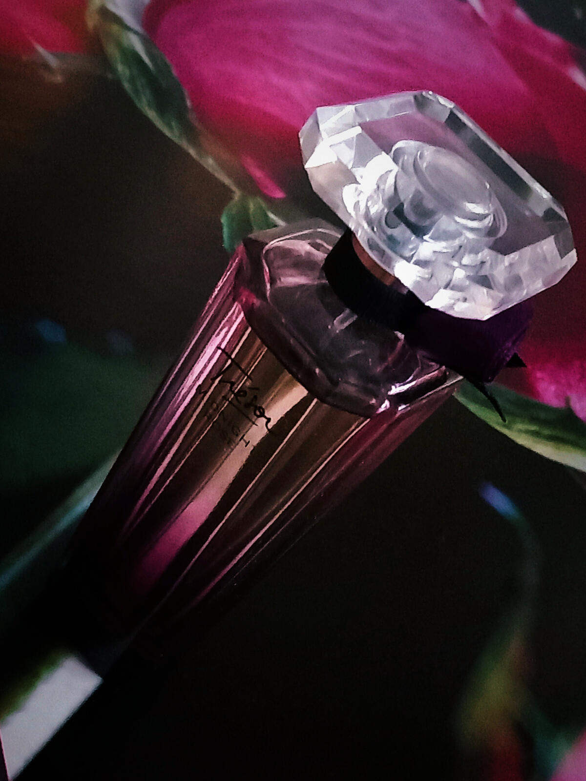 Sladká, ale umírněná růže doprovázená malinami a povzbuzená pikantními tóny růžového pepře. Večerní vůně s výjimečnou výdrží a siláží. Luxusní a krásné balení. Není to úplně můj šálek čaje, ale uznávám, že je dobrá. Jako u všech Lancome stačí pár střiků, jinak hrozí, že omráčíte své okolí.