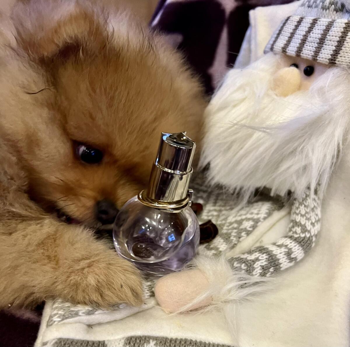 Parfém, něžný, trochu sladký, pudrový, uklidňujícím způsobem objímající a s neobyčejnou poetikou, která má moc vyzařovat neuvěřitelnou auru klidu a bezpečí.