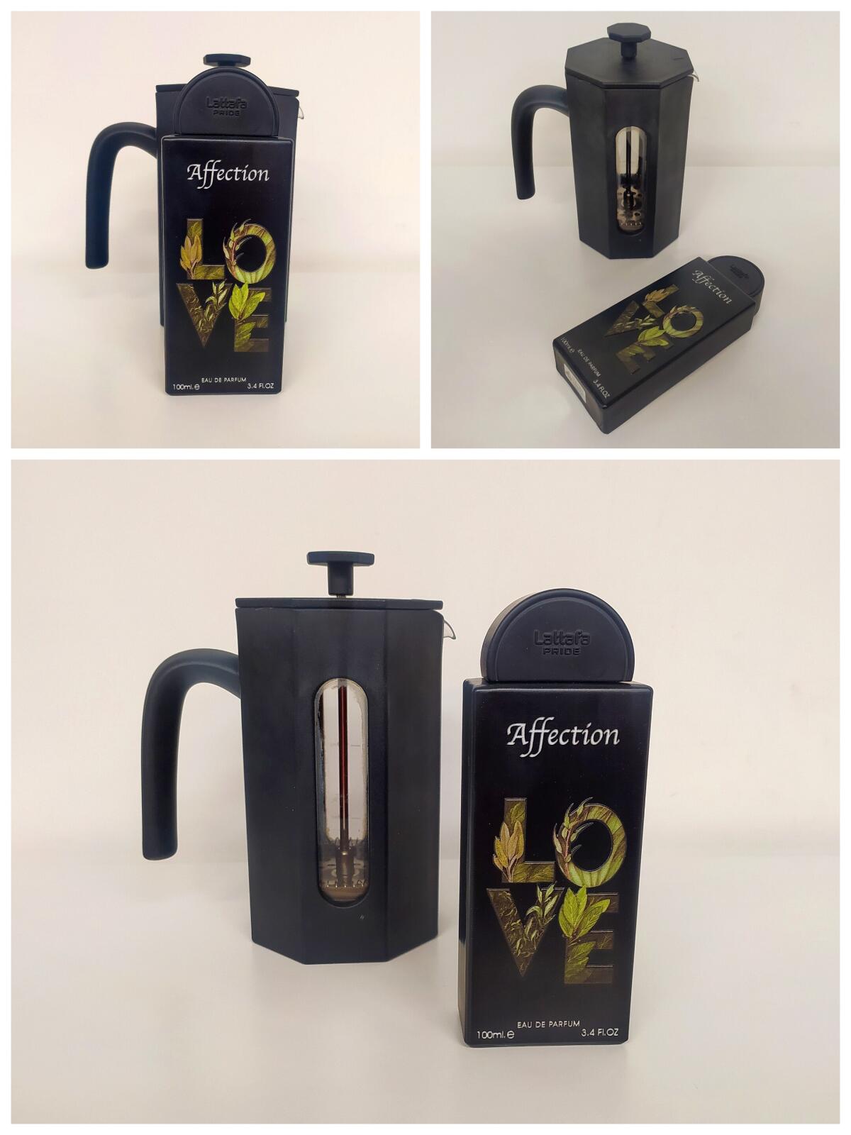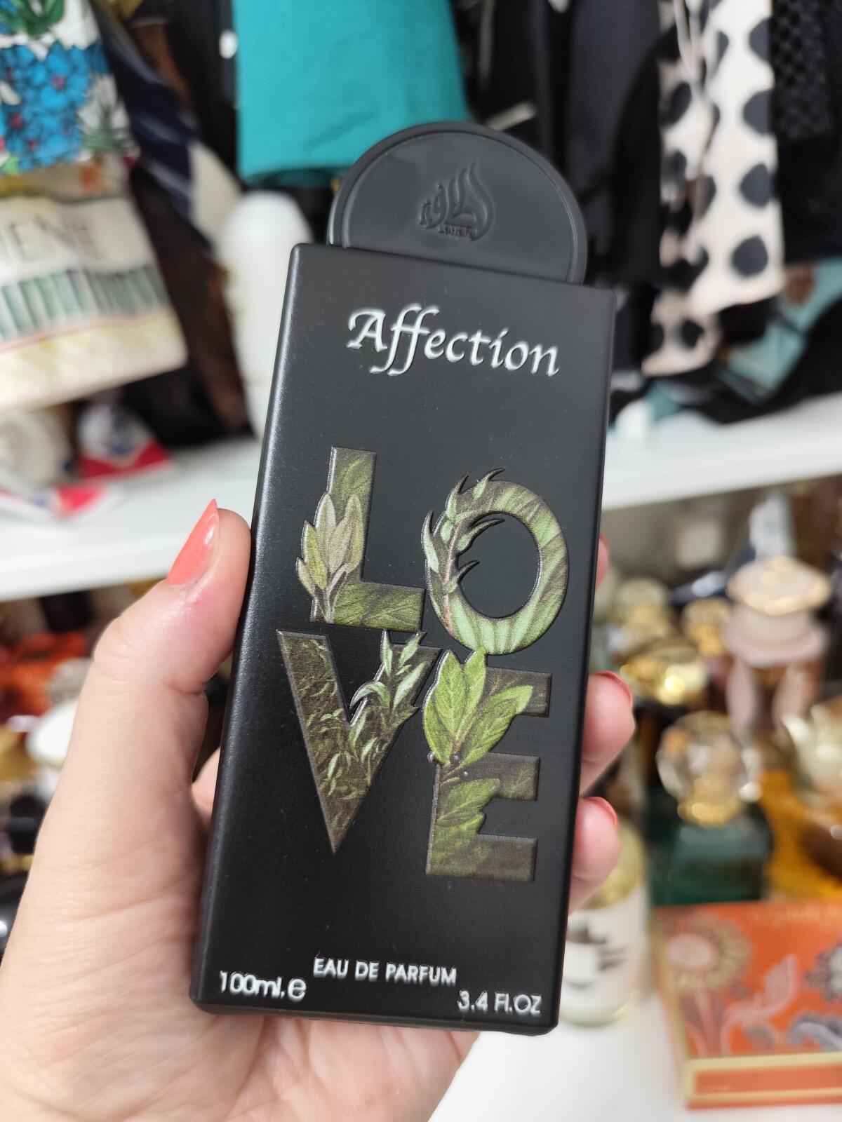 Affection podle Lattafa Perfumes je Floral vůně pro ženy a muže. Toto je nová vůně. Affection byl/a uveden/a v roce 2024. Vrchní tóny jsou Pistácie, Lískový oříšek a Černý rybíz; střední tóny jsouLaktóny, Jasmín, Konvalinka a Maliny ; základní tóny jsou Laktóny, Vanilka a Fazole tonka.