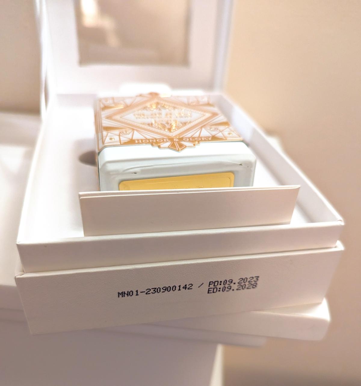 Tuto vůni jsem nosila a mohu potvrdit, že NENÍ cítit jako Hacivat, Qaed Al Fursan, Ani nebo jakákoli kombinace těchto tří vůní. Všechny jsou to úžasné vůně, a to samé platí pro Honor & Glory. To, co z ní cítím, je čerstvě vymačkaná & studená ananasová šťáva, na rozdíl od Hacivat & Qaed Al Fursan, které mají obě tón grilovaného ananasu. Podle mého nosu není v suchém puchu žádná kořenitost. Stává se krémovou vůní, ódou na tóny Crème Brulee a vanilky. Z hlediska provedení zůstává mnoho nedotaženého, protože má střední projekci a rychle se stává kožní vůní. Doufejme, že by jí pomohlo několikatýdenní macerování. Budu vás všechny informovat. Celkově se mi tato vůně opravdu LÍBÍ a byla bych ráda, kdyby Lattafa i nadále vyráběla tyto "samostatné" vůně, čas od času. Zdá se, že se dá nosit napříč všemi ročními obdobími a nezapomeňme na flakon....Immaculate!