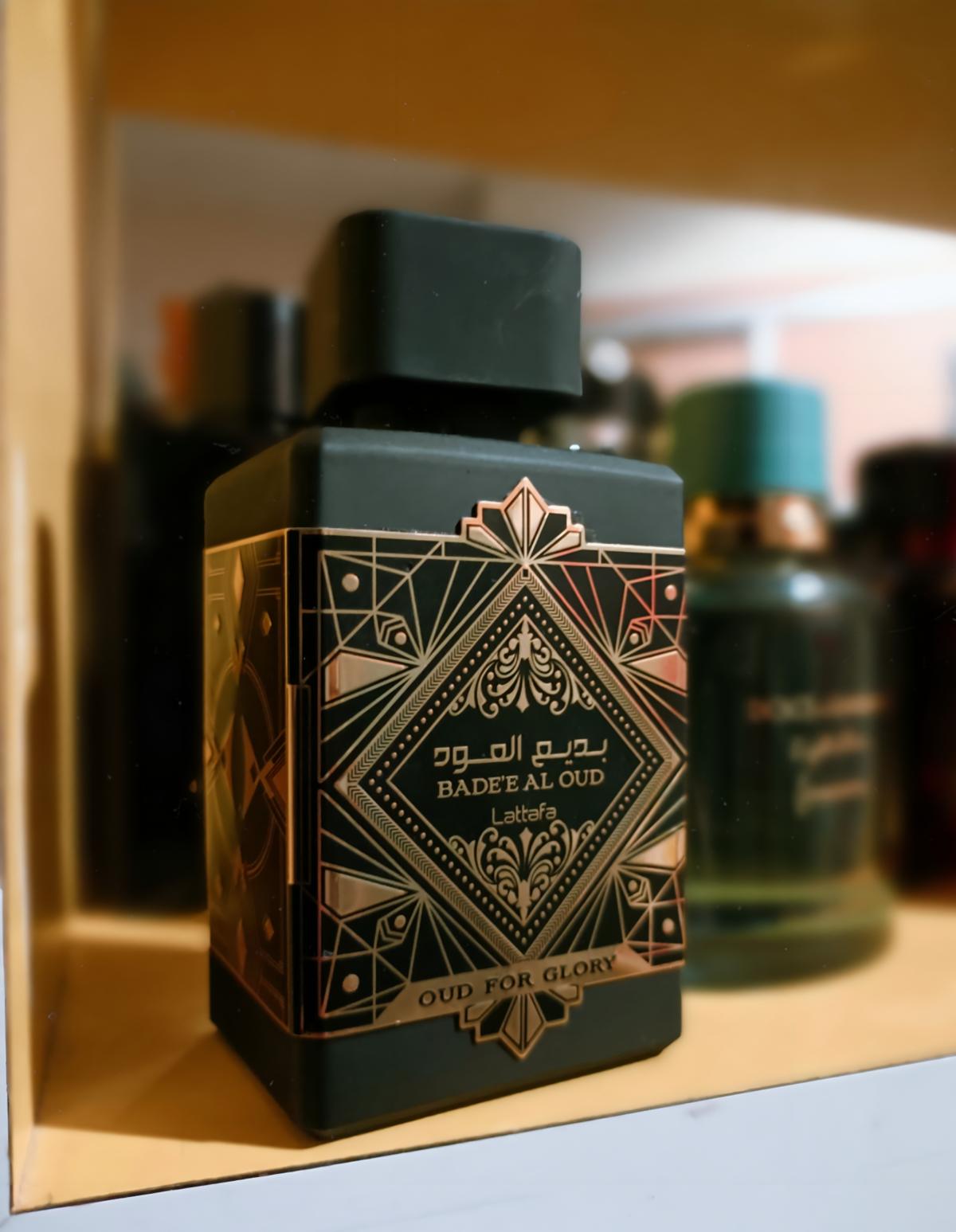 Bade'e Al Oud Oud for Glory podle Lattafa Perfumes je Orientální Woody vůně pro ženy a muže. Bade'e Al Oud Oud for Glory byl/a uveden/a v roce 2020. Vrchní tóny jsou Šafrán, Muškátový oříšek a Levandule; střední tóny jsouAgarové dřevo (oud) a Pačuli ; základní tóny jsou Agarové dřevo (oud), Pačuli a Pižmo.