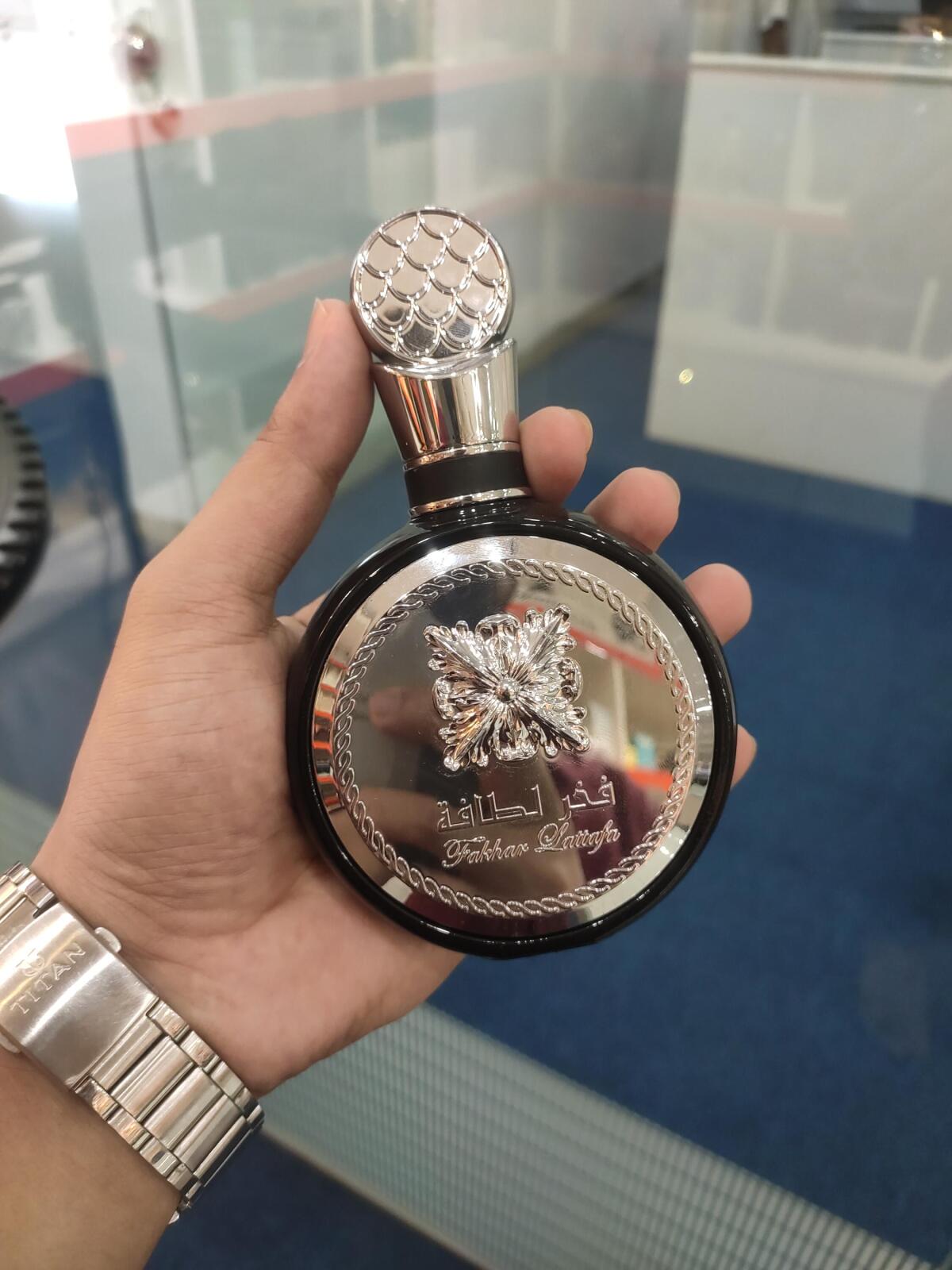 Lataffa mě přiměla přestat používat značkové parfémy, jsou předražené a přeplácané. Každopádně v jižní Africe je horko a já jsem se naučila, že když stříkáte lataffu, vaše maximum by mělo být 4střiky, jinak si lidé budou stěžovat, místo aby vás pochválili, protože tato šťáva je tak silná. Na tónech a jejich rozdělení mi moc nezáleží, jediné co chci je vonět na úrovni po celý den a to mi Fakhar v tomto horkém počasí splňuje. Tři střiky v 6 ráno, když jdu do práce, kolem 17 hodiny se mě pak ptají, co to na mně voní. Je to, jako bych se právě osprchovala a znovu nanesla, ale nee. Pokud chcete vidět fakhar v nejlepší formě, nastříkejte na pokožku, tam se děje kouzlo, když se pokožka začne potit a fakhar vstupuje do hry. Další fakt, který se mi líbí, je, že vůně se rozplyne ve 3. hodině a vy si myslíte, že je pryč.. NE NE NE, lidé kolem vás cítí u 5feet daleko a přesto ji nemůžete cítit ani na sobě... Je to dobrá 10-12h projekce a za dobrou cenu.. Miluju to... Nelituji, děkuji.