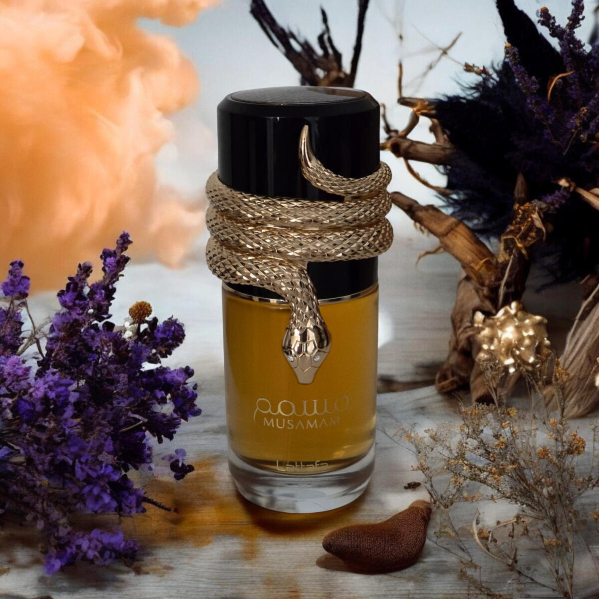 Musamam podle Lattafa Perfumes je Woody Aromatic vůně pro ženy a muže. Musamam byl/a uveden/a v roce 2022. Vrchní tóny jsou Šafrán, Levandule a Italská mandarinka; střední tóny jsouJantarové dřevo, Virginský cedr a Pelargónie ; základní tóny jsou Dřevo akigala, Kadidlo a Labdanum.