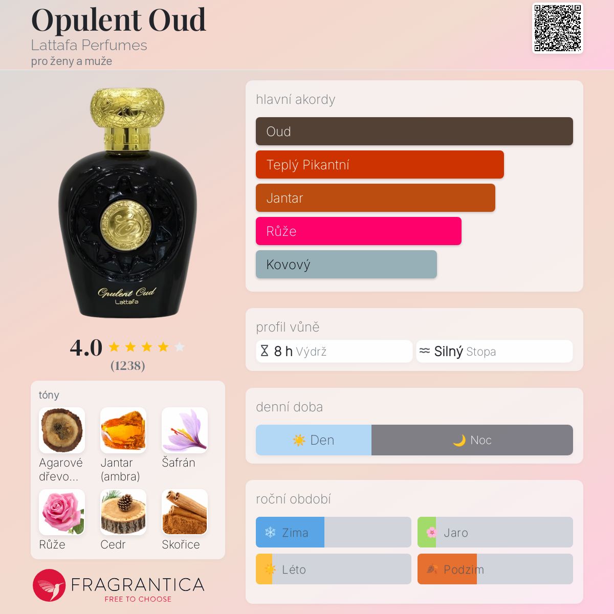 Koření je zde velmi dobře namícháno dohromady a opravdu mě to navnadilo na vyzkoušení dalších parfémů Lattafa. Řekla bych, že pokud ji seženete levně, udělejte to, určitě stojí za vyzkoušení!