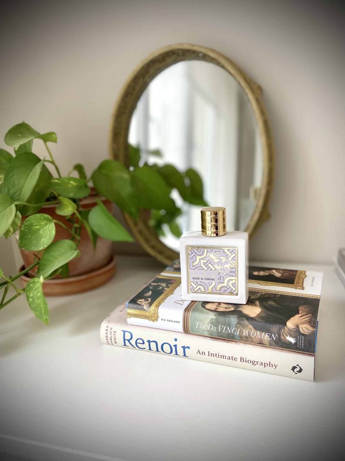 Světle béžová barva, čistí lidé, slunečný a chladný den, příjemná koupel, odpočinek na pohovce nebo v houpací síti, spokojenost, dovolená... Zpočátku je citrusová, květinová a svěží. Pak pomalu ztrácí citrusové vlastnosti a stává se jemně krémovou. White Qaed má zpočátku čistý, citrusově oranžový, krémový styl; je zde cítit gumový nádech nové pneumatiky, který je téměř nepostřehnutelný a přináší do vůně zvláštní druh čistoty, hladkosti a svěžesti. Celkově tu máme jemnou, čistou a velmi příjemnou vůni, která se snadno nosí a líbí: jemnou gurmánskou vůni, která je šťavnatá, trochu mléčná a nesměle pudrová. Její sladkost je jemná, ale rozhodně není sladká, a má, obecně řečeno, lehký mariánskolázeňský aspekt s kokosem vedle vázy plné bílých květů. Mohl bych však také říci, že po počátečním citrusovém náboji získává poměrně zřetelnou vůni jahodových sušenek. Ať tak či onak, je příjemná a snadno se nosí. Přítomnost jasmínu, kokosu a pižma je velmi výrazná.