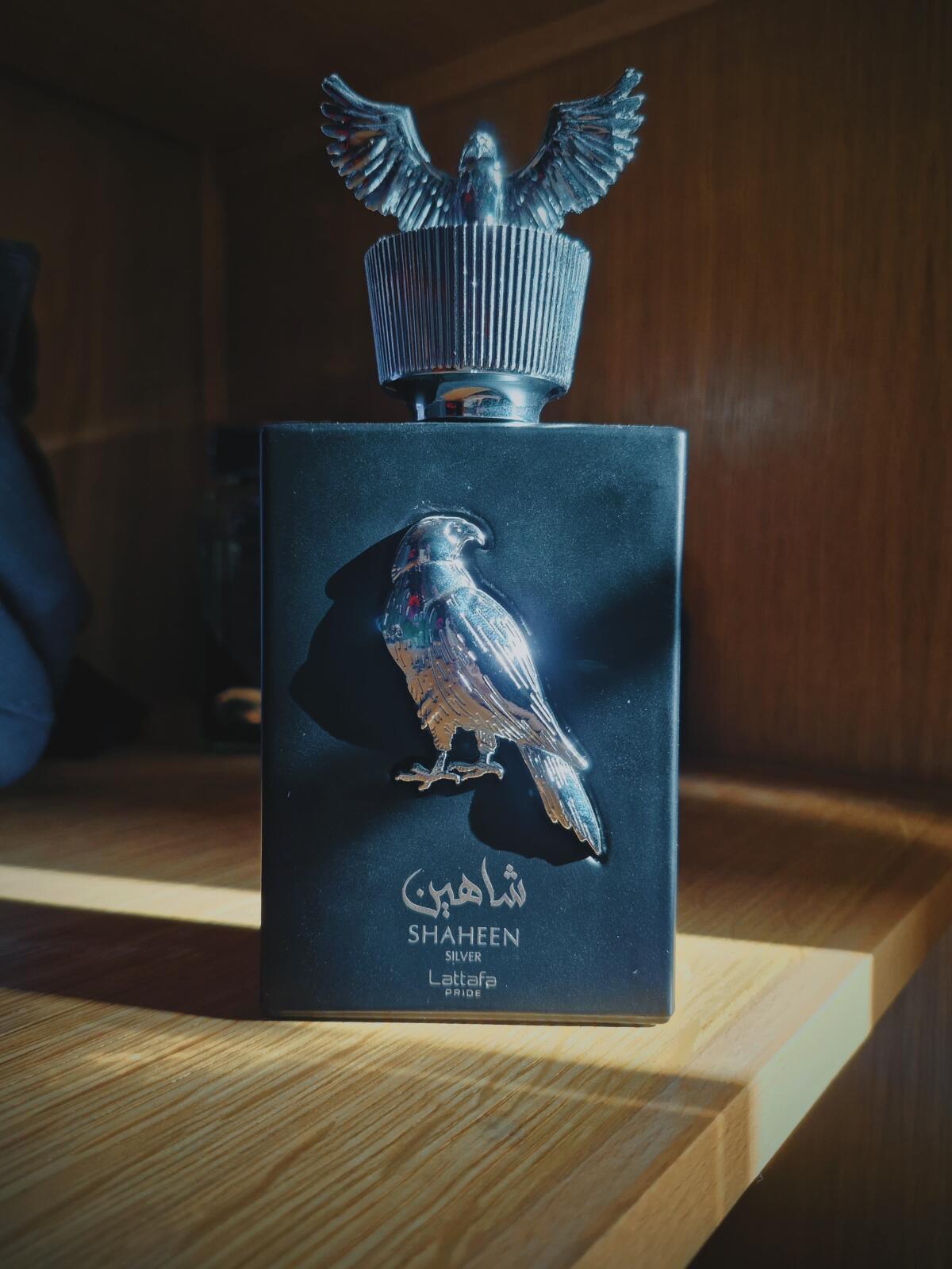Shaheen Silver podle Lattafa Perfumes je vůně pro ženy a muže. Shaheen Silver byl/a uveden/a v roce 2022. Vrchní tóny jsou Bergamot a Černý rybíz; střední tóny jsouPačuli a Růže ; základní tóny jsou Dubový mech, Pižmo a Jantar (ambra).