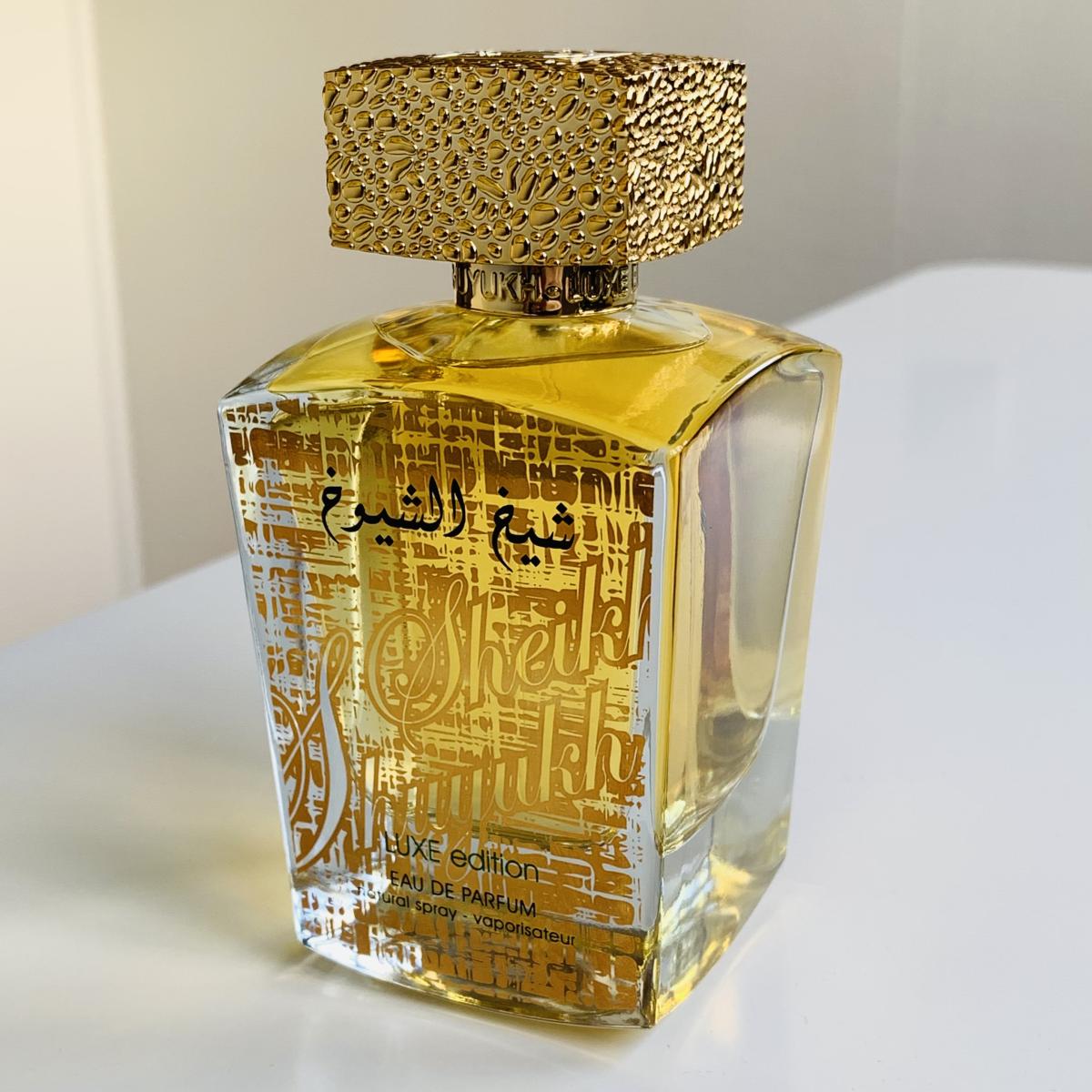 Sheikh Al Shuyukh Luxe je typická vůně blízkovýchodního stylu, pevná a hladká, dobře zakulacená a nikdy ne štiplavá. V úvodu je omamná, jako alkoholický nápoj, ochucený armagnac s krémovým jantarem a kořeněnými nuancemi. Zpočátku se line závan sladké, růžové a pikantní skořice. Následuje znatelná růže, kterou vyvažuje krásný, senu podobný svěží květ šafránu. Tmavě červený kořeněný prášek není tak léčivý jako v jiných blízkovýchodních vůních. Spolu s růží cítím spoustu oudové mízy nebo čehokoli, co voní jako oud, protože tento tón se nikde neprojevuje. Není to však typická kombinace růže a oudu. Je tu zvrat; zemitý oud je výrazný, zatímco květiny a koření kráčejí několik kroků za ním. První minuty jsou o sladké chlácholivosti s medovým, voskovým nádechem, příjemné a ne protivné. Někteří lidé přirovnávají počáteční vůni k vůni voskového salonu, protože se v něm používá včelí vosk s pryskyřicí. Růže zde vede, není příliš ženská, i když musíte mít rádi růže, abyste vůni ocenili.