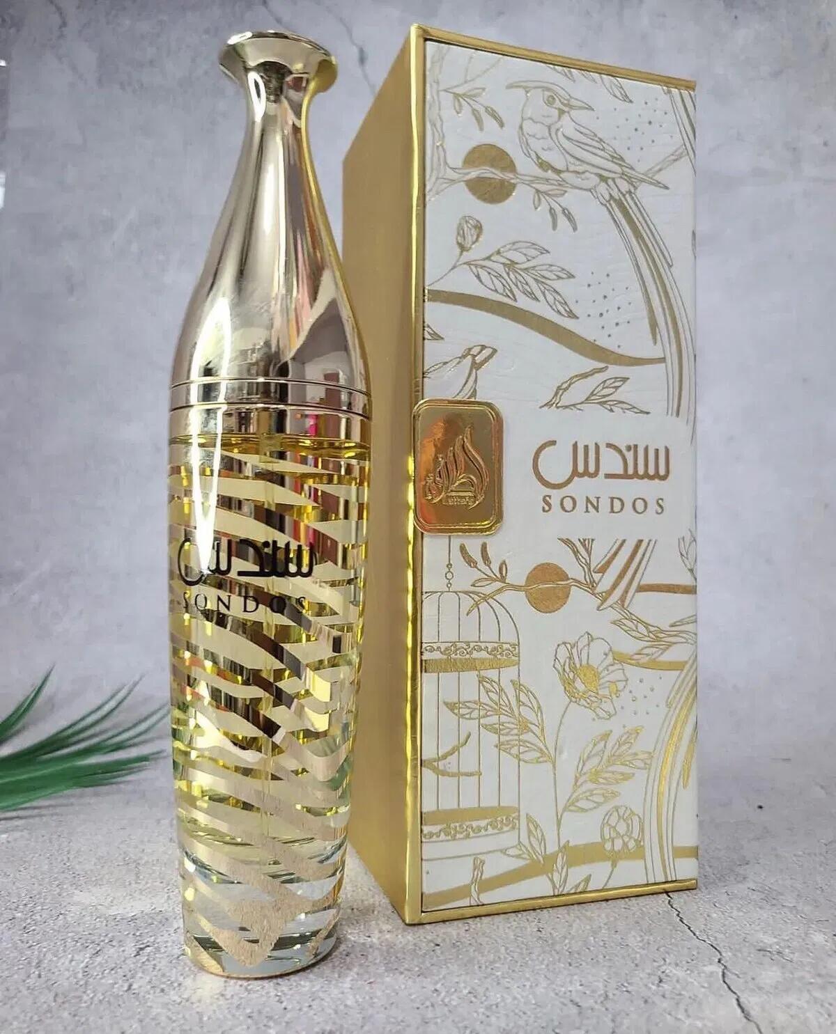 Sondos podle Lattafa Perfumes je vůně pro ženy a muže. Sondos byl/a uveden/a v roce 2023. "Nosem" za touto vůní je Alex Lee. Vrchní tóny jsou Mandarinka a Šafrán; střední tóny jsouTuberóza, Broskvový květ a Růže ; základní tóny jsou Vanilka, Semiš a Pačuli.