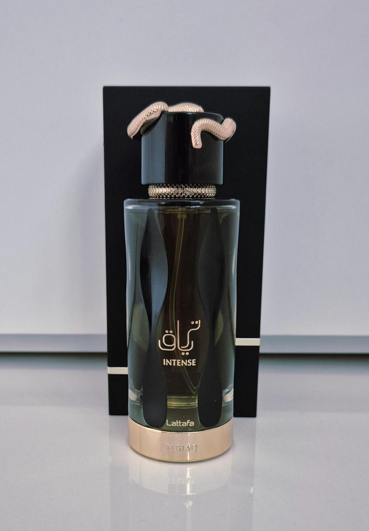 Teriaq Intense podle Lattafa Perfumes je Orientální Spicy vůně pro ženy a muže. Toto je nová vůně. Teriaq Intense byl/a uveden/a v roce 2024. "Nosem" za touto vůní je Quentin Bisch. Vrchní tóny jsou Šafrán a Bergamot; střední tóny jsouPlum Liquor a Skořice ; základní tóny jsou Jantar (ambra), Fazole tonka a Benzoin.