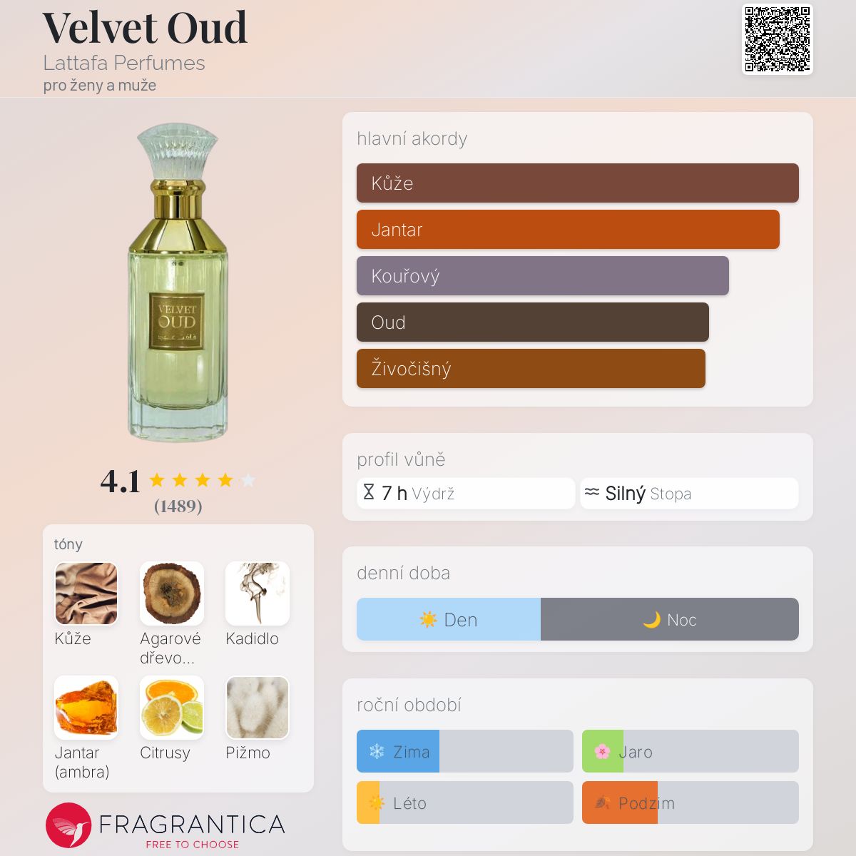 Velvet Oud podle Lattafa Perfumes je Orientální Woody vůně pro ženy a muže. Velvet Oud byl/a uveden/a v roce 2018.