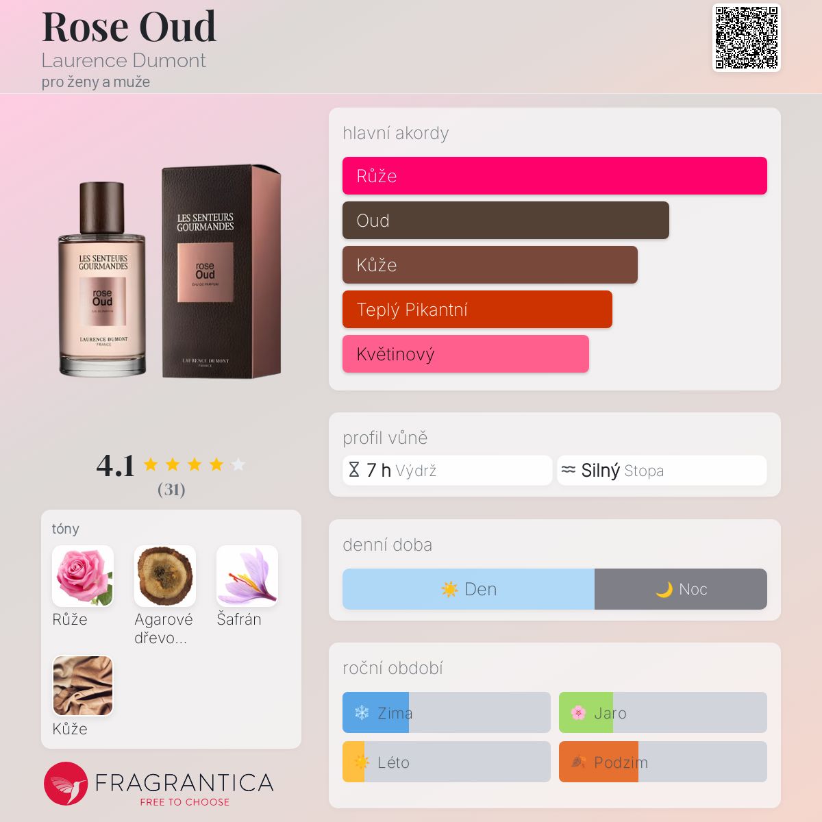 Rose Oud podle Laurence Dumont je Leather vůně pro ženy a muže. Rose Oud byl/a uveden/a v roce 2013. Vrchní tón je Šafrán ; střední tóny jsouRůže a Agarové dřevo (oud) ; základní tón je Kůže.