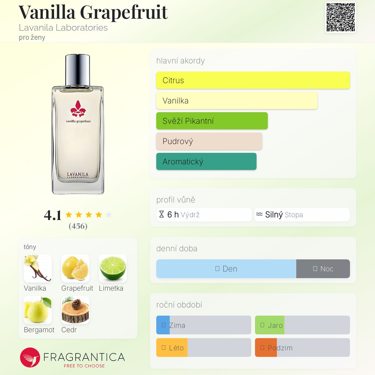 Vanilla Grapefruit podle Lavanila Laboratories je Citrus Gourmand vůně pro ženy. Vanilla Grapefruit byl/a uveden/a v roce 2007.