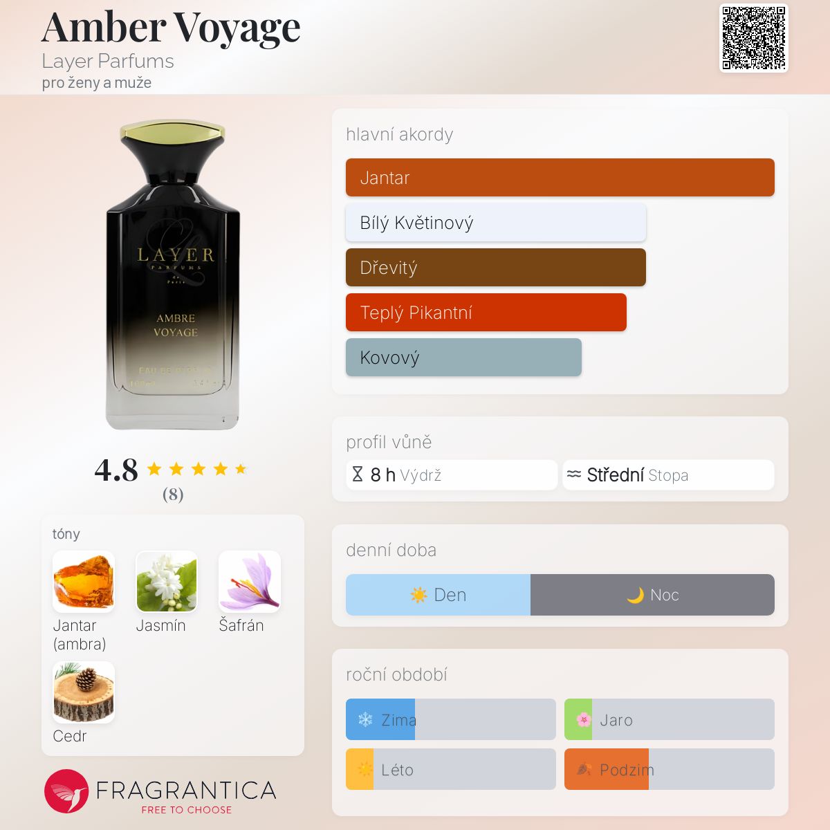 Amber Voyage podle Layer Parfums je Orientální vůně pro ženy a muže. Amber Voyage byl/a uveden/a v roce 2021. "Nosem" za touto vůní je Cèdric Civette.