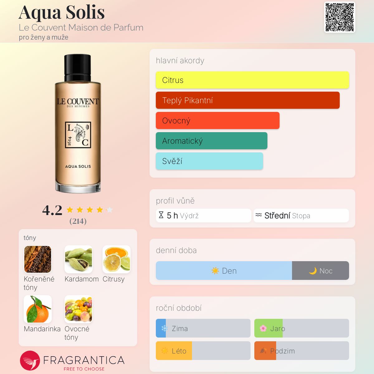 Aqua Solis podle Le Couvent Maison de Parfum je Aromatic Spicy vůně pro ženy a muže. Aqua Solis byl/a uveden/a v roce 2019. "Nosem" za touto vůní je Jean-Claude Ellena.
