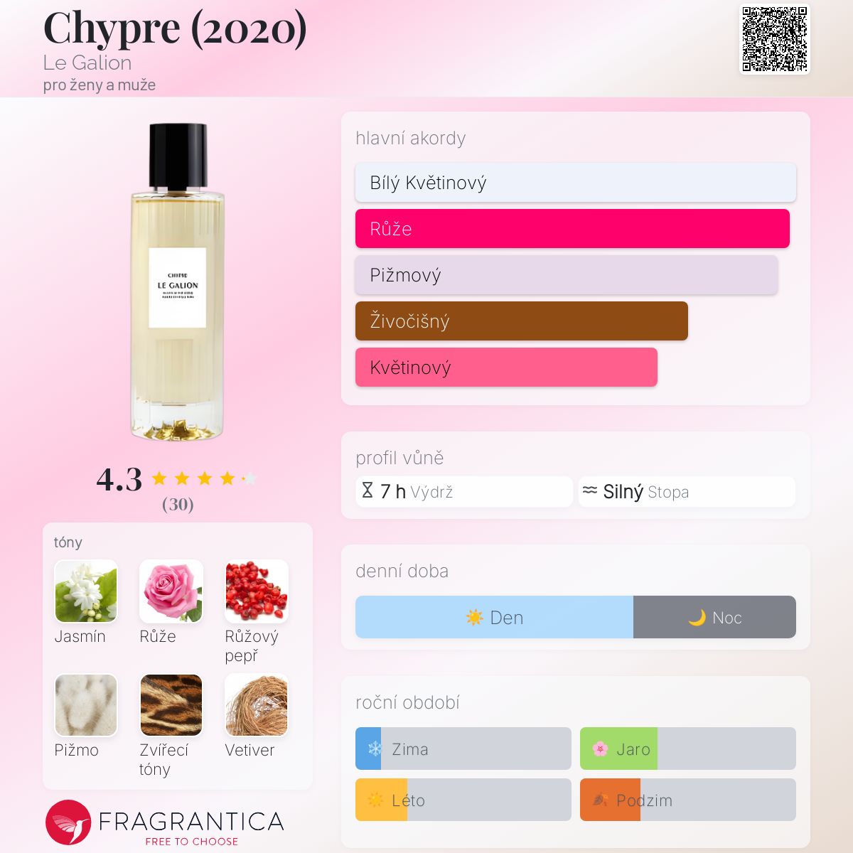 Chypre (2020) podle Le Galion je Chypre Floral vůně pro ženy a muže. Chypre (2020) byl/a uveden/a v roce 2020. "Nosem" za touto vůní je Jean-Christophe Hérault.
