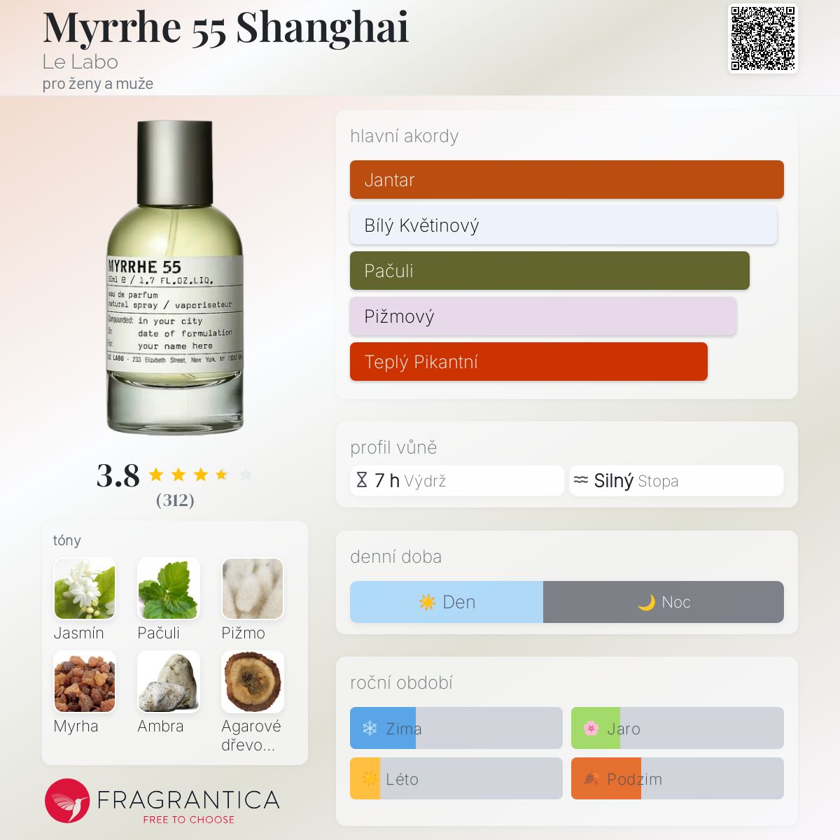 Myrrhe 55 Shanghai podle Le Labo je Chypre vůně pro ženy a muže. Myrrhe 55 Shanghai byl/a uveden/a v roce 2023. "Nosem" za touto vůní je Daphné Bugey.
