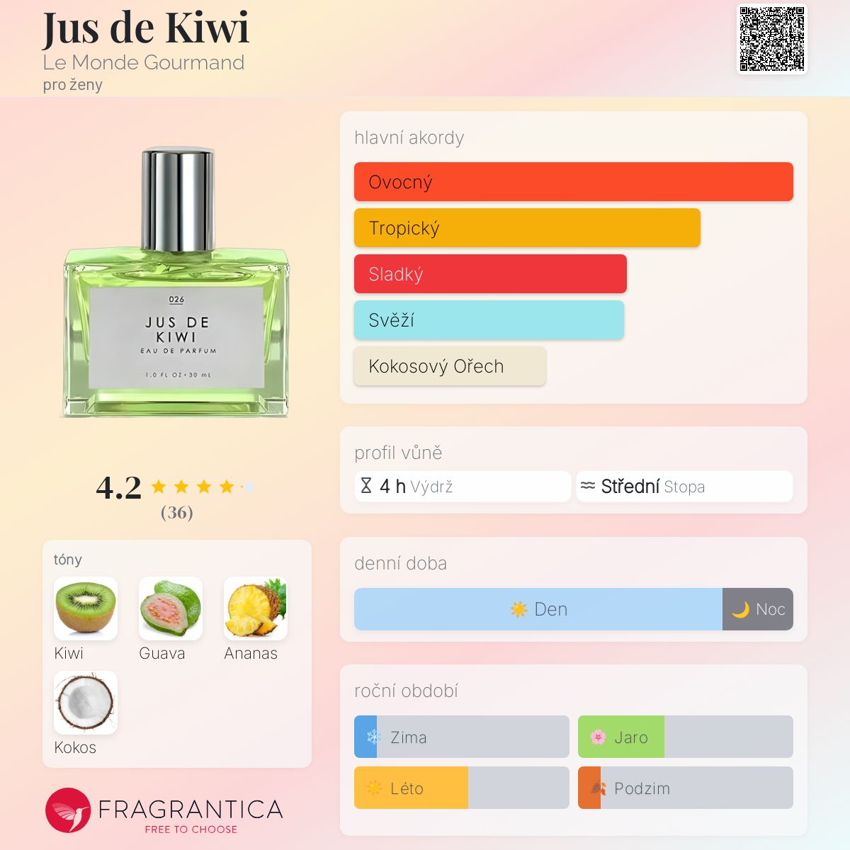 Jus de Kiwi podle Le Monde Gourmand je Aromatic Green vůně pro ženy. Jus de Kiwi byl/a uveden/a v roce 2015.